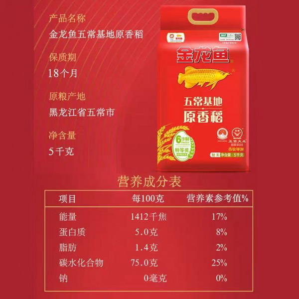 (中百)金龙鱼原香稻5kg 五常大米东北大米