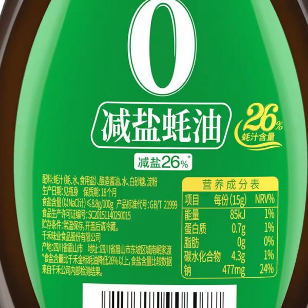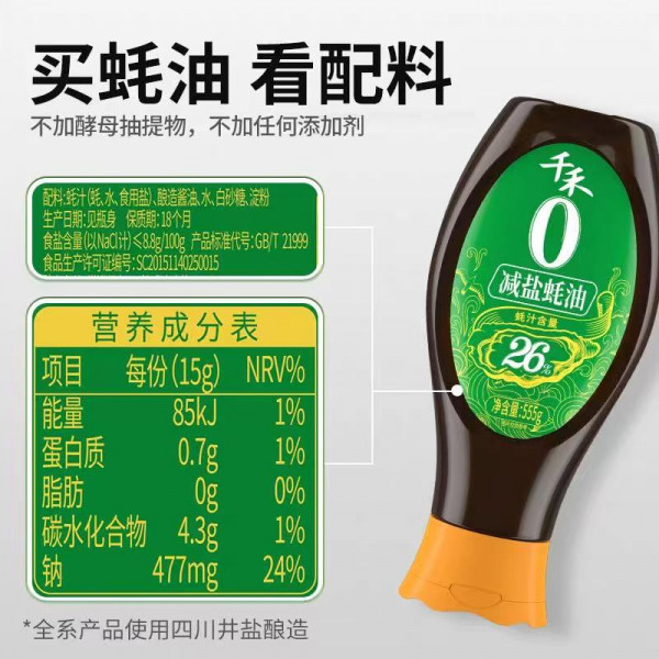(中百)千禾减盐蚝油挤挤装555g家用炒菜提鲜