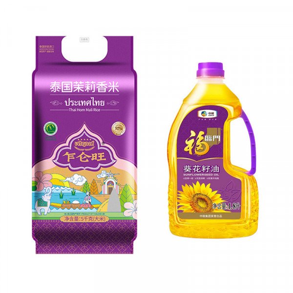 (世星阳光)乍仑旺原装泰国茉莉香米5kg+福临门压榨一级葵花籽油1.8L 米油组合装 一年一季 泰国原装进口 优质葵花籽 富含维生素e 少油烟