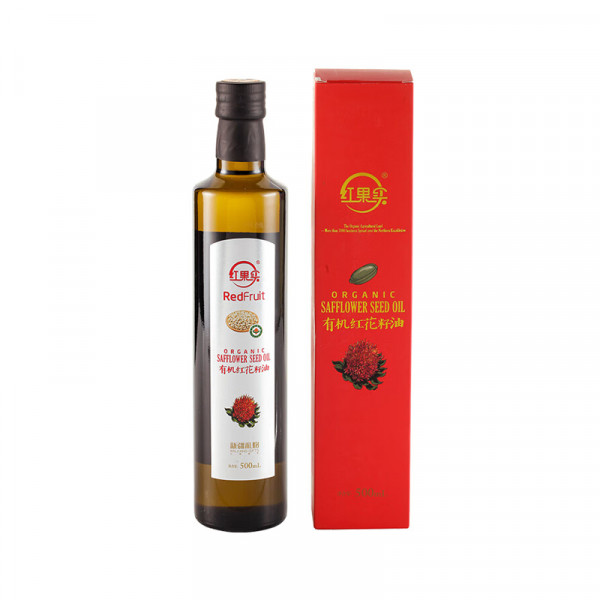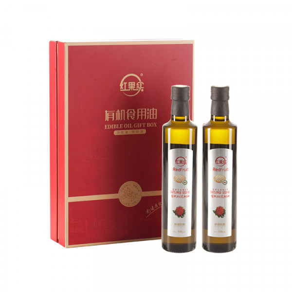 (巨邦佑)BJ+红果实有机红花籽油500ml 新疆玻璃瓶食用油礼盒物理压榨