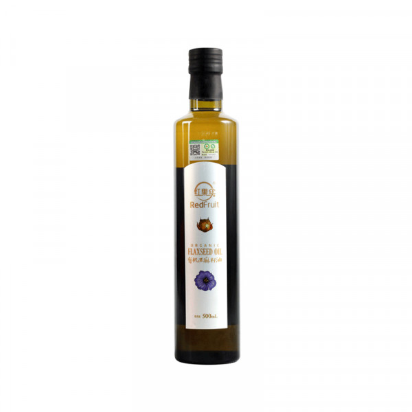 (巨邦佑)BJ+红果实新疆有机亚麻籽油500ml 玻璃瓶装一级绿色食品食用植物油