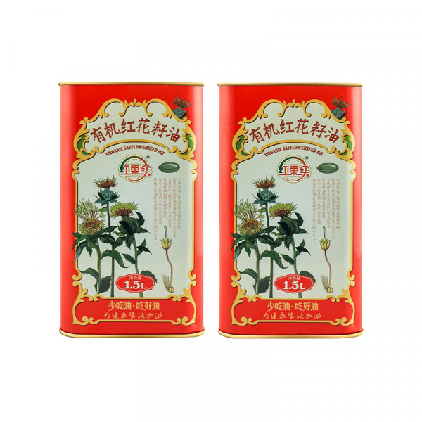 (巨邦佑)BJ+红果实有机红花籽油1.5L 铁桶装食用油原料进口物理压榨一级品质