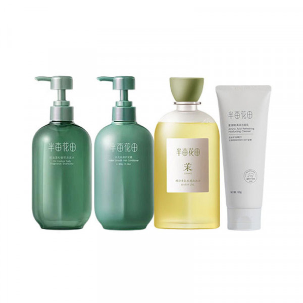 (世星阳光)+半亩花田蓬松洗发丝滑护发沐浴油洁面四件套KJ11 洗发水400ml 护发素400ml 洁面乳120g 沐浴油400g 氨基酸表活复配甜菜碱 0硅油配方 九大不添加 发质丝滑柔护 头皮舒适不紧绷