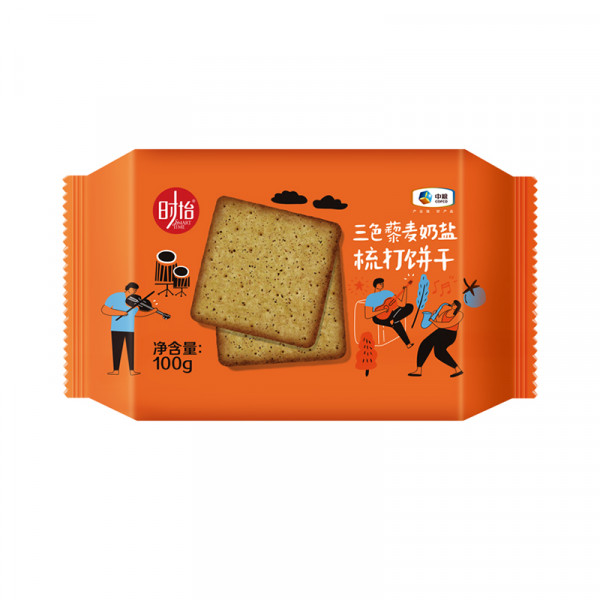 (中合誉品)时怡三色藜麦奶盐梳打饼干100g 办公室饱腹零食苏打饼干