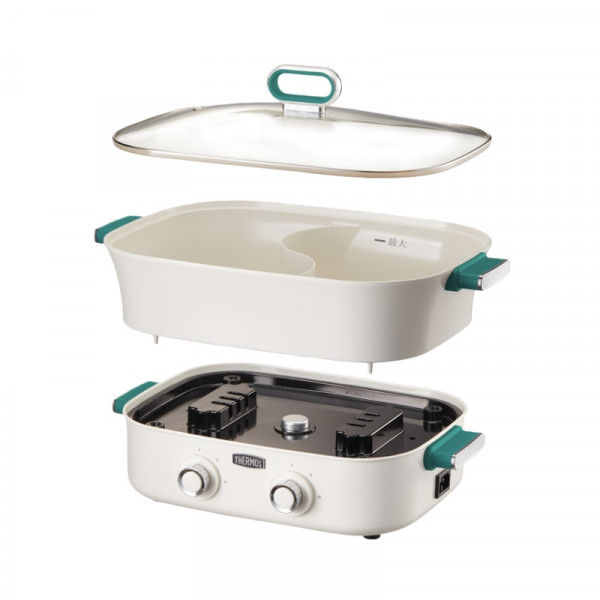 (世星阳光)YL+膳魔师(THERMOS)电火锅 6.5L 专用锅 鸳鸯锅 家用电煮锅 分体式多功能锅 涮肉锅 分区双控家用电热锅 多用途锅 不沾煎烤料理锅 【全家宴豪华版】EHA-4351A-G