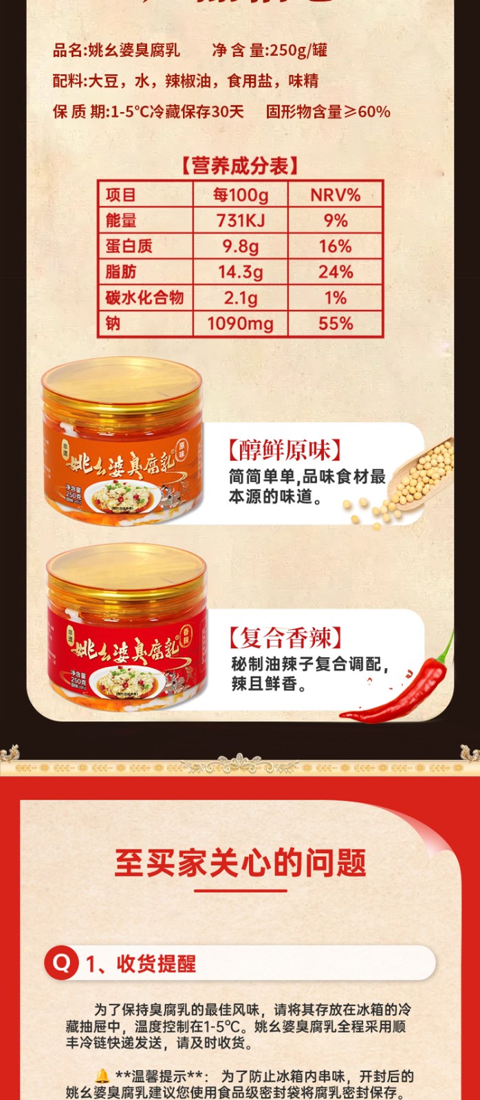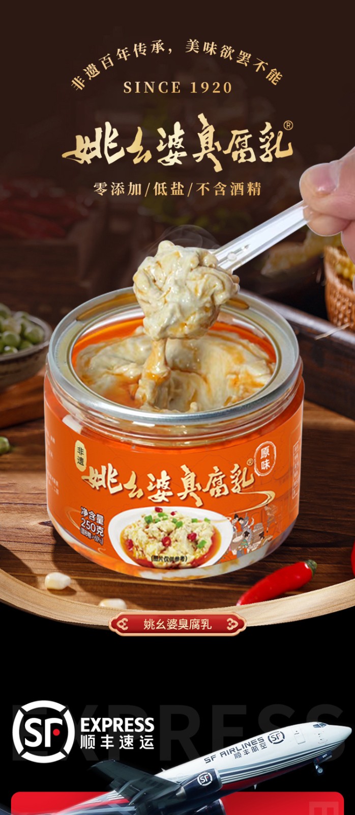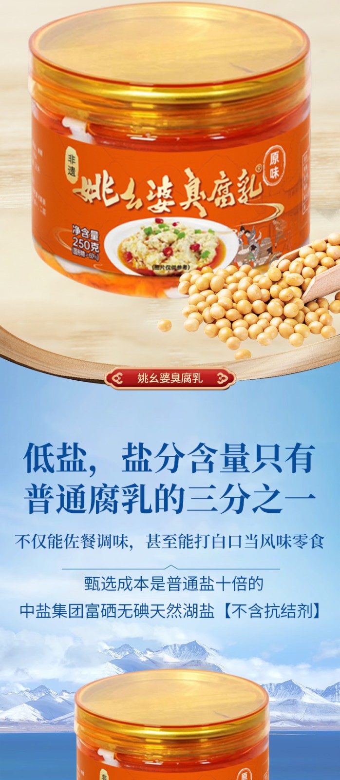 商品名称:(巨邦佑)BJ+姚幺婆臭腐乳250g 风味食品 益生活菌轻盐零添加 闻着臭吃着鲜欲罢不能