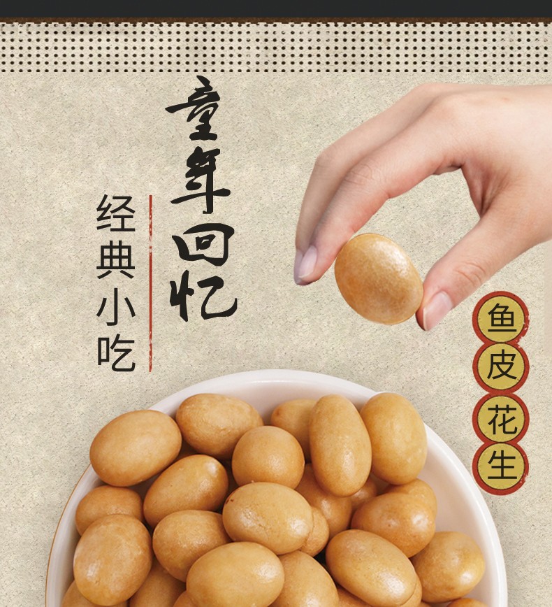 商品名称:(中合誉品)鲜记鱼皮花生348g 坚果炒货干果酥脆小吃童年怀旧休闲零食品