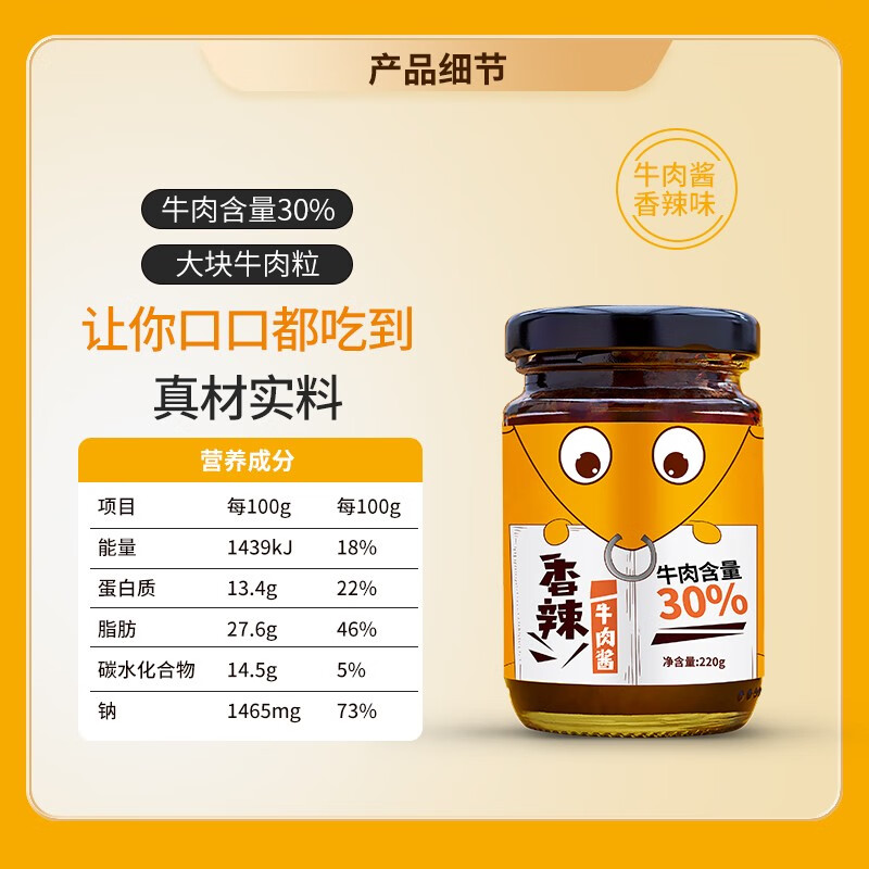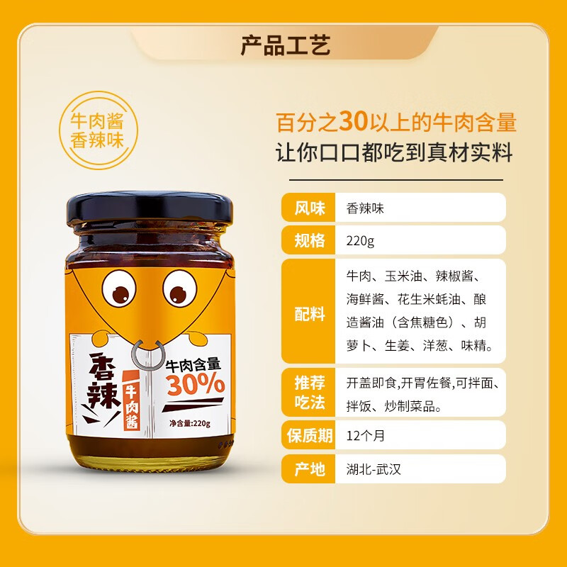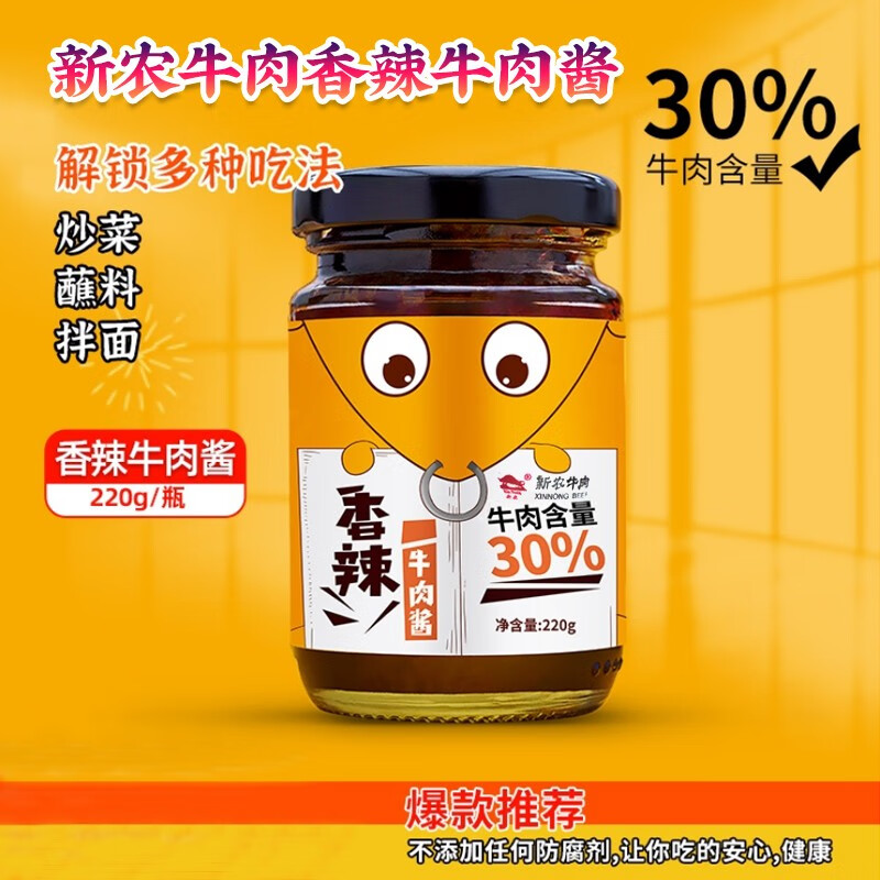 商品名称:(巨邦佑)R+新农香辣牛肉酱220g 拌饭面下饭菜