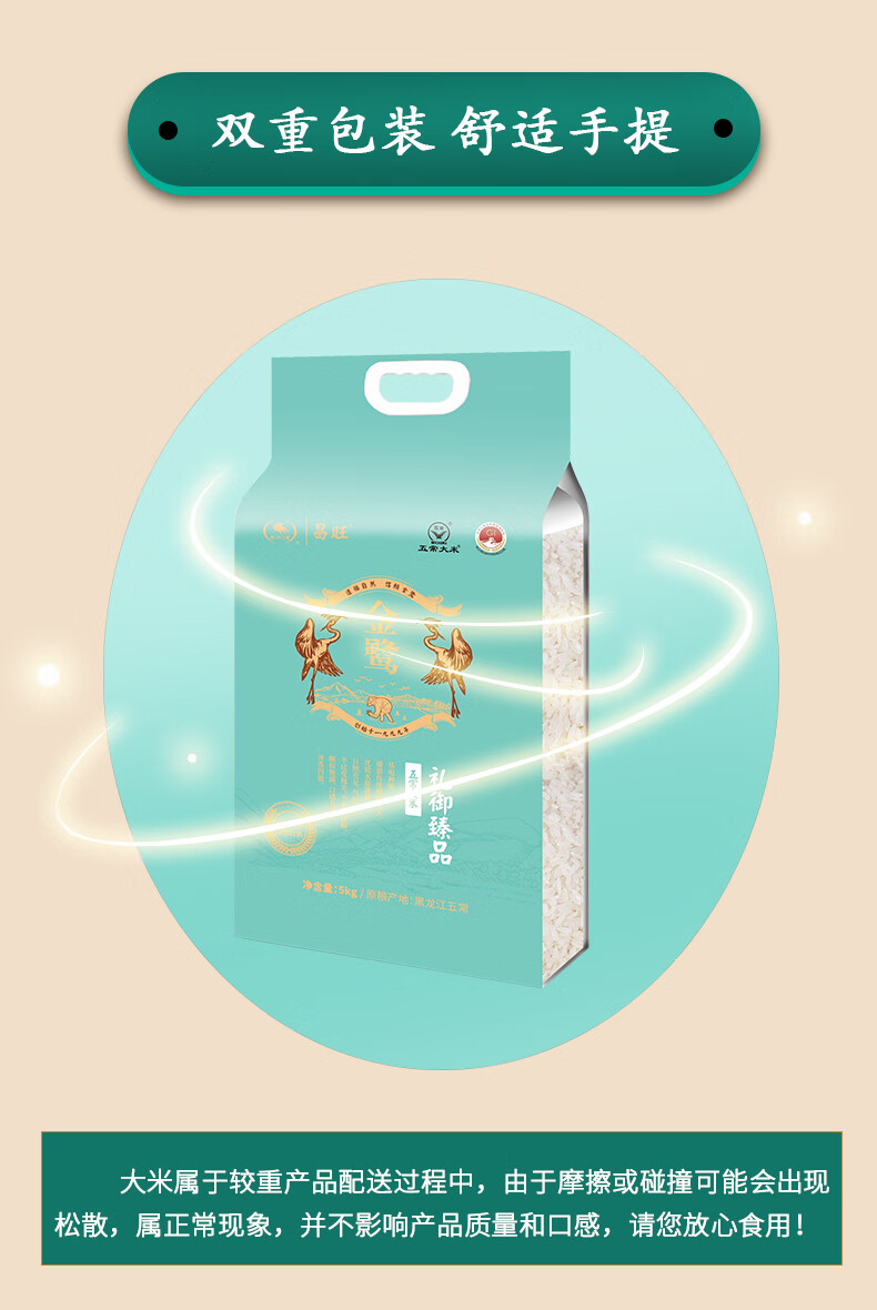 商品名称:(巨邦佑)R+金鹭一级新米东北黑龙江五常礼御臻品大米5kg真空双层包装长粒香