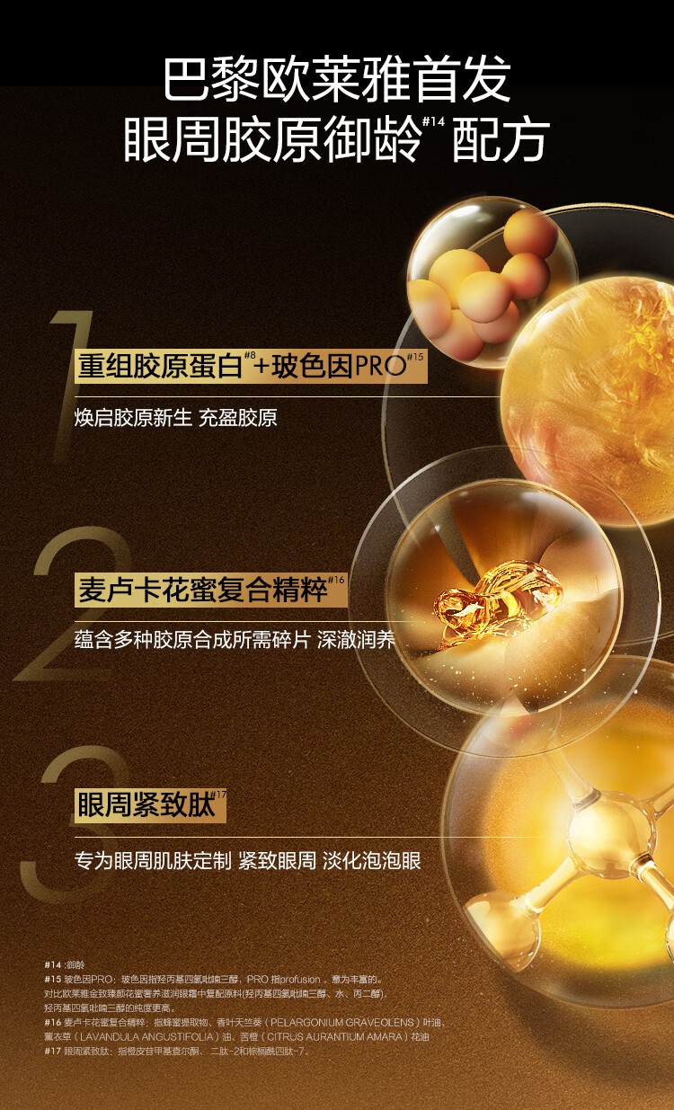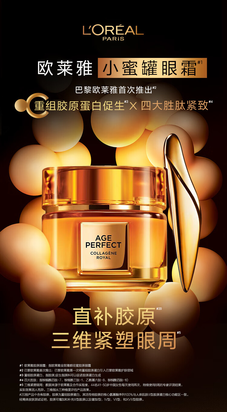 (巨邦佑)BJ+欧莱雅金致臻颜花蜜胶原眼霜20ml 保湿紧致抗皱淡化细纹