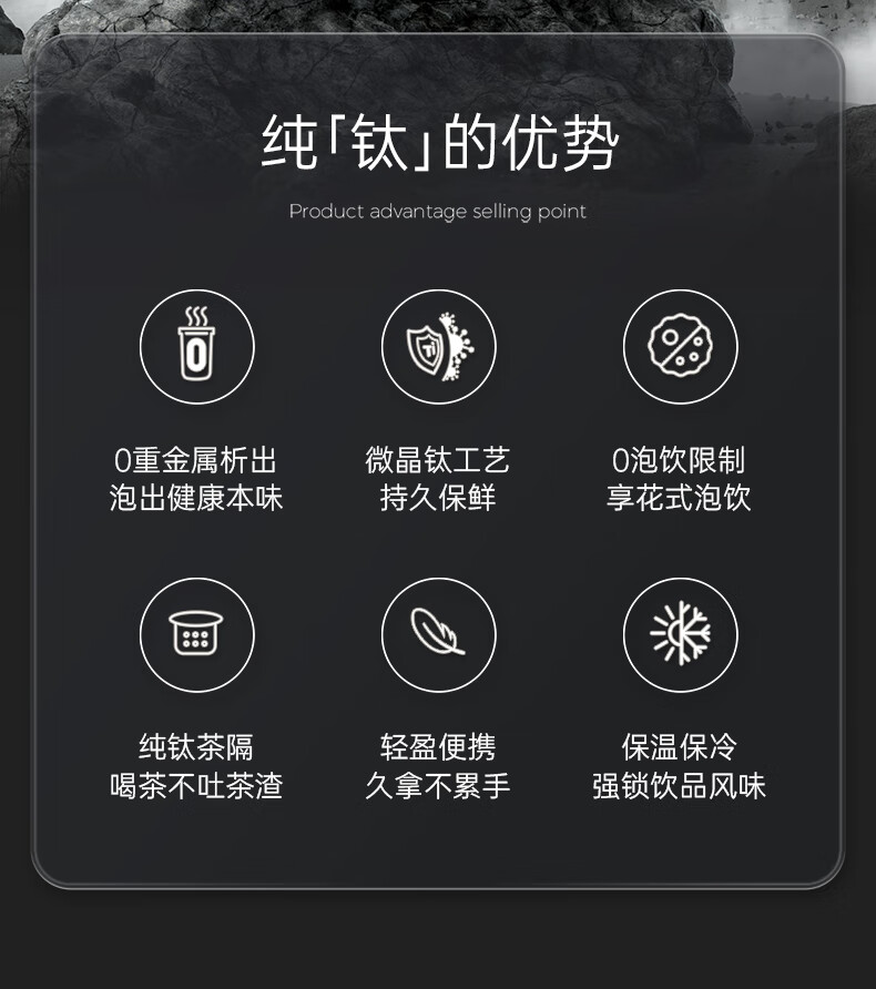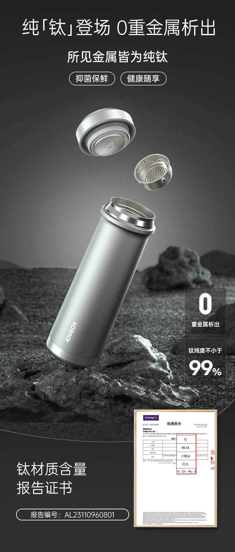 商品名称:(超运·禾贸)电商-康巴赫钛晶系列纯钛真空保温杯450mL(云际灰)KH-B48T01 纯钛保温杯带茶隔泡茶咖啡保温保冷易清洗便携茶杯