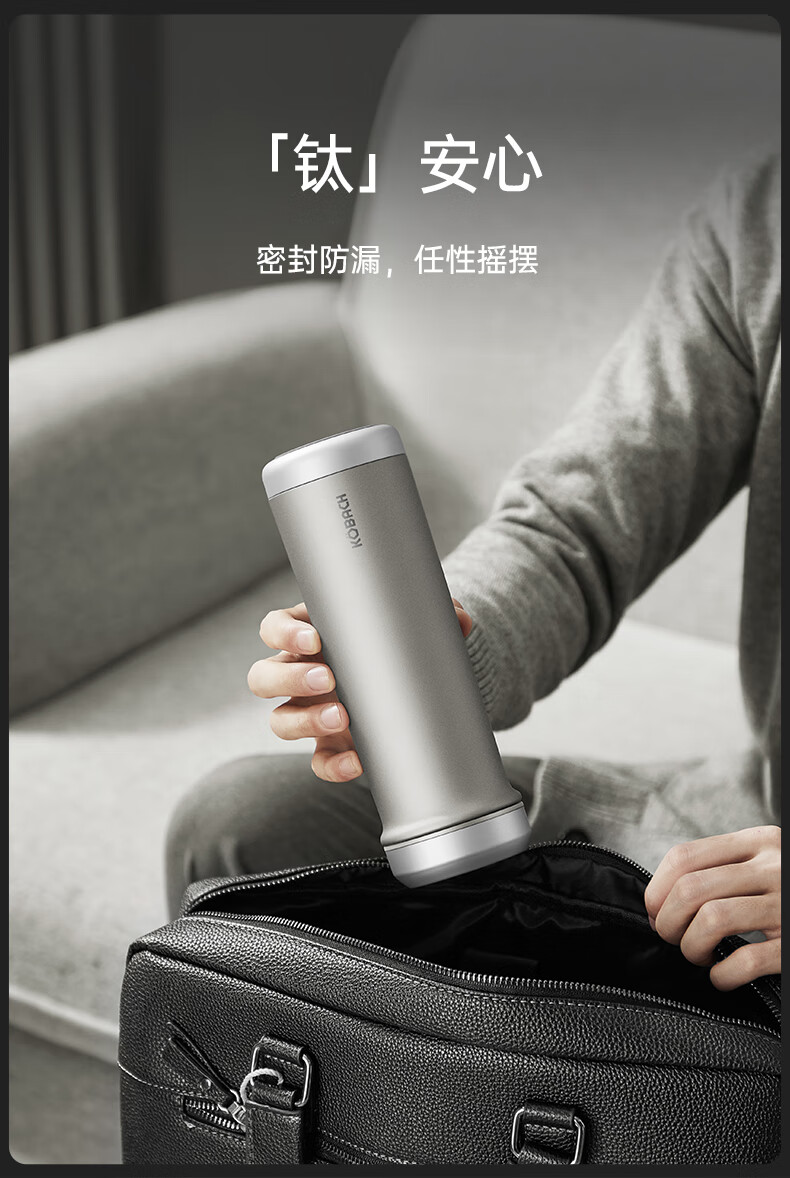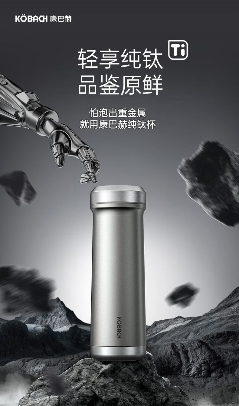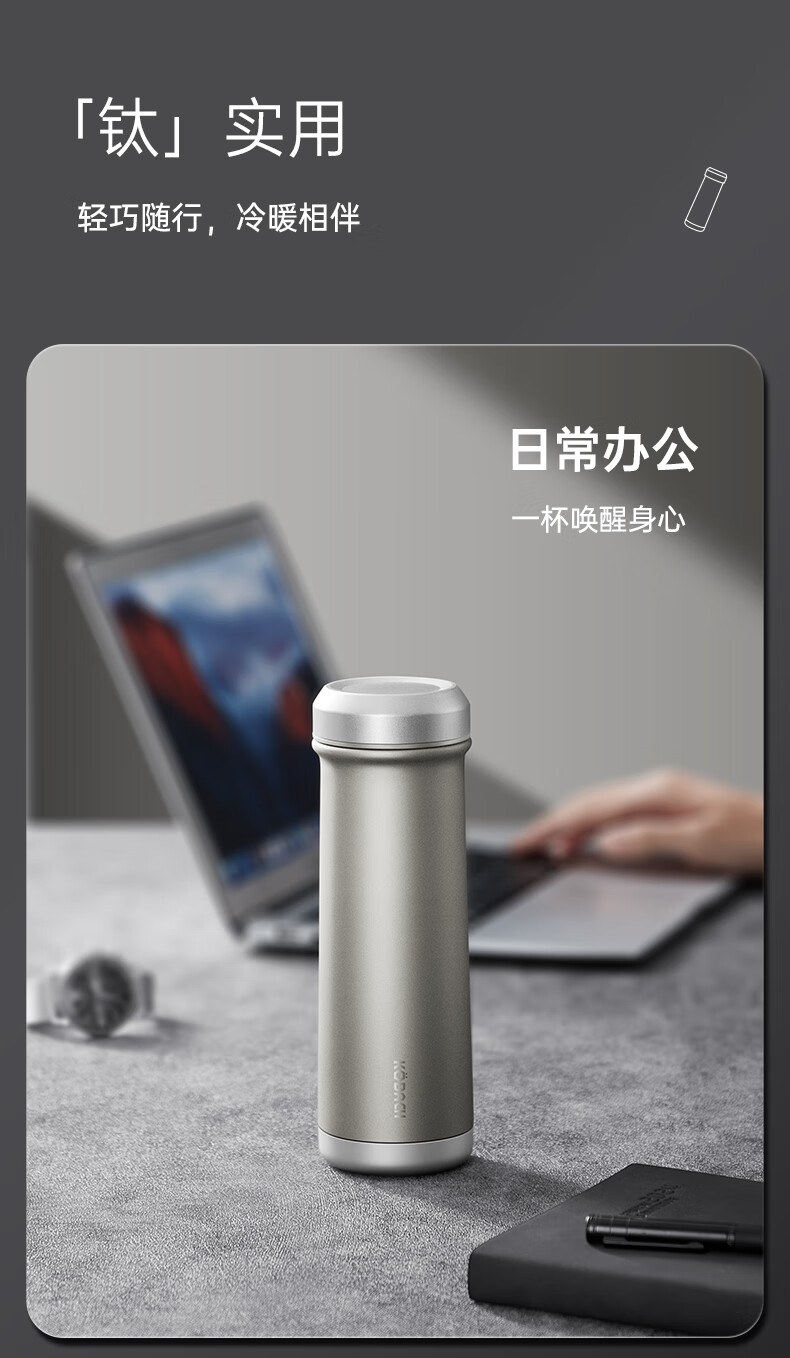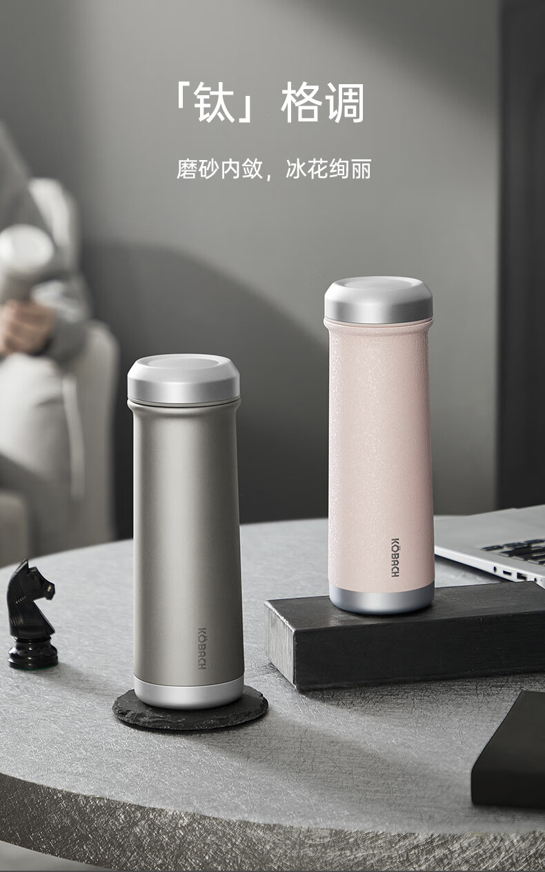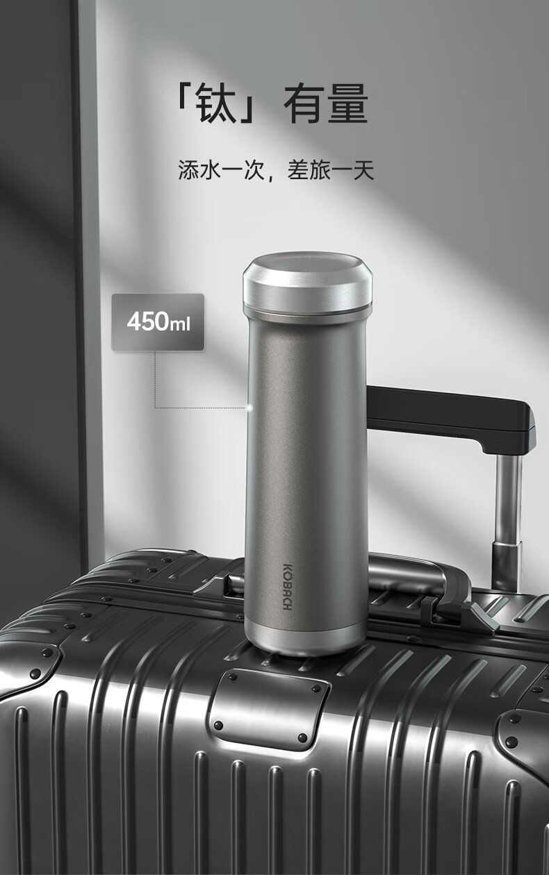 (超运·禾贸)电商-康巴赫钛晶系列纯钛真空保温杯450mL(云际灰)KH-B48T01 纯钛保温杯带茶隔泡茶咖啡保温保冷易清洗便携茶杯