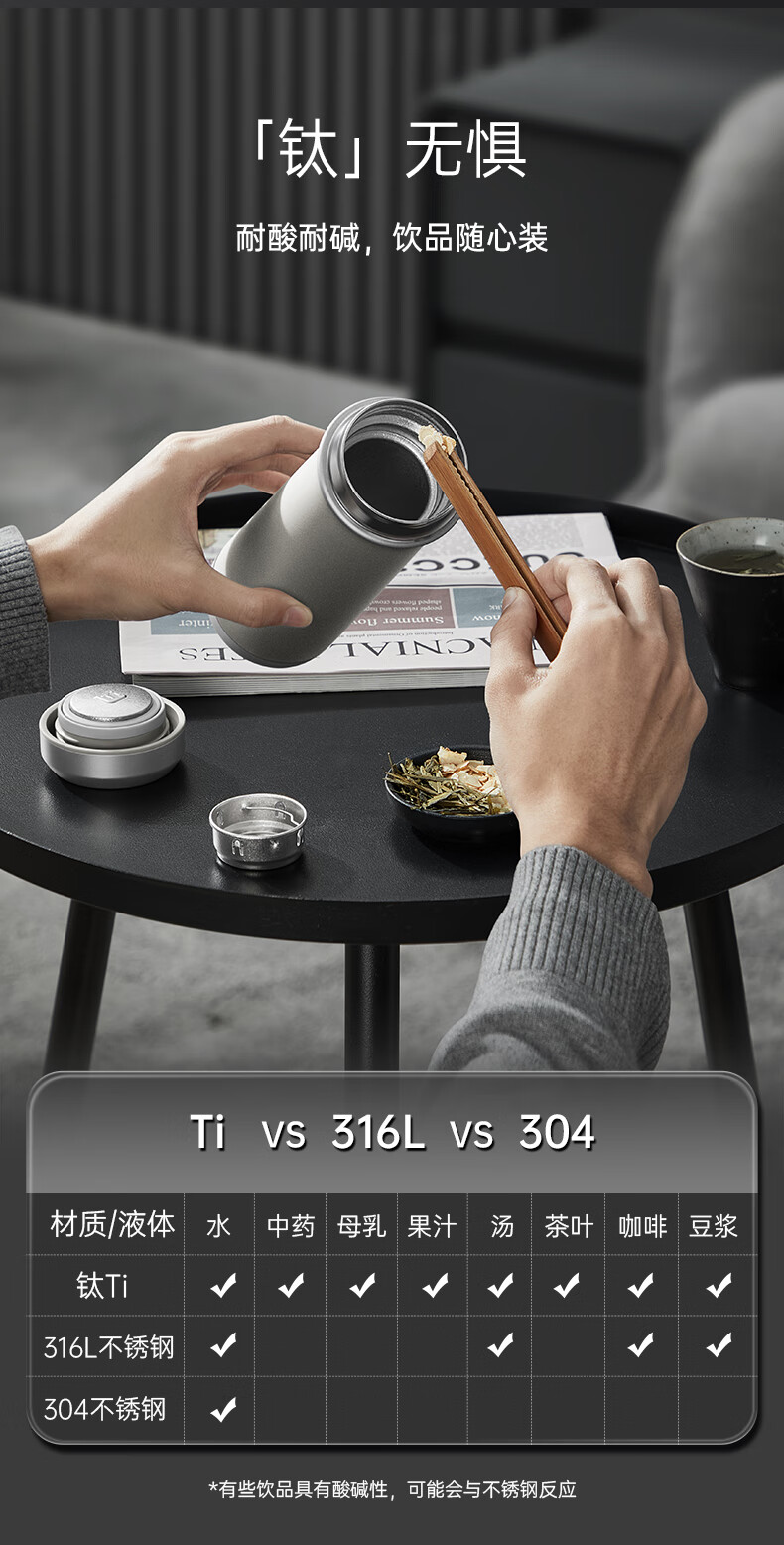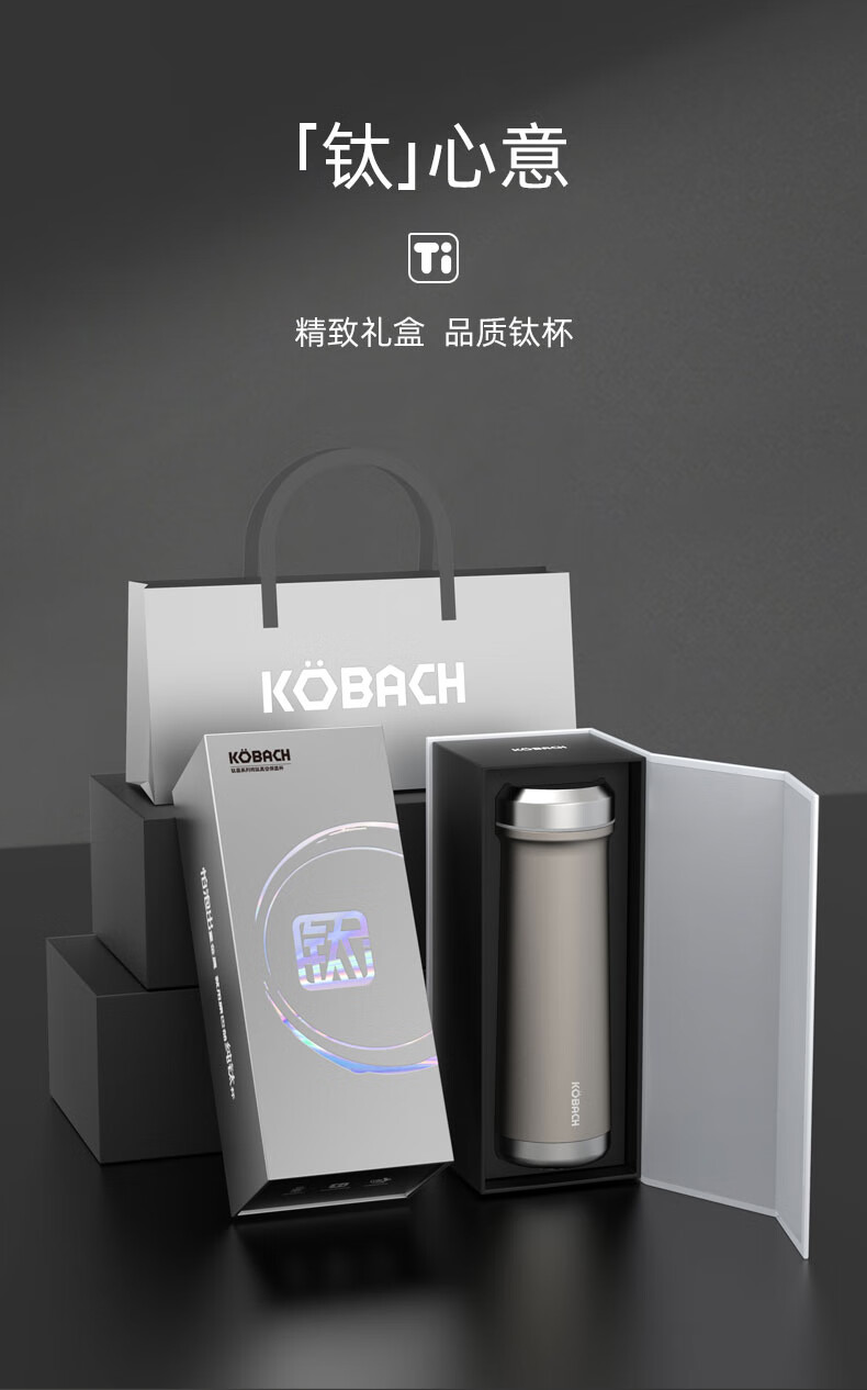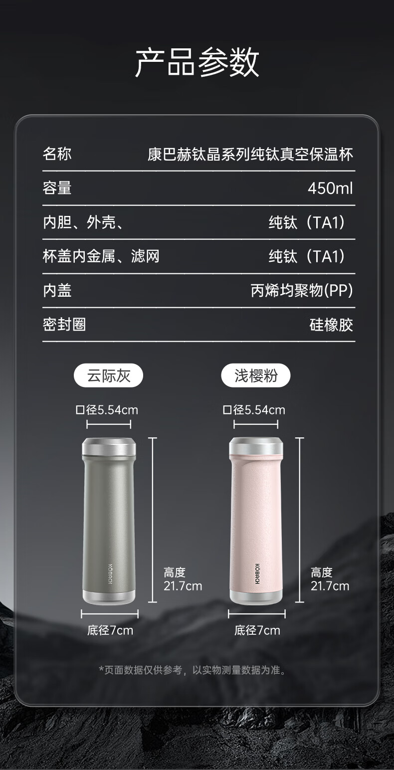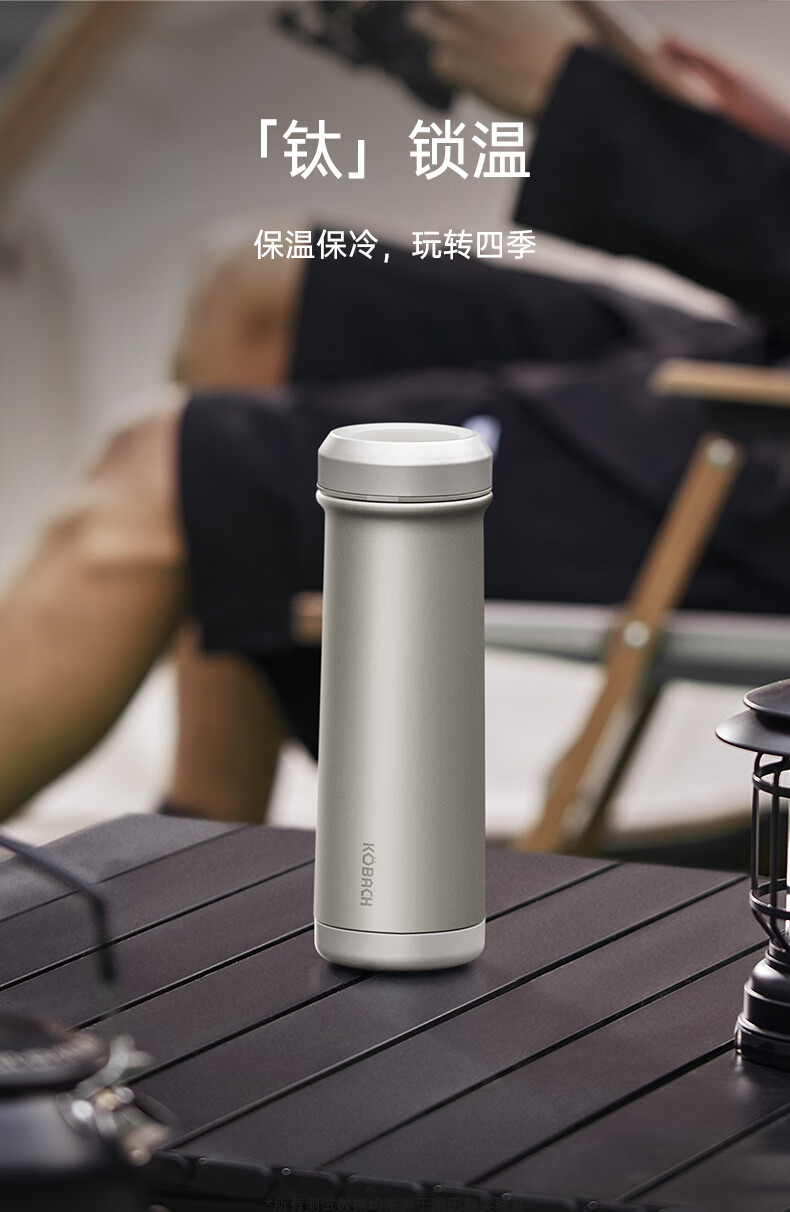 (超运·禾贸)电商-康巴赫钛晶系列纯钛真空保温杯450mL(云际灰)KH-B48T01 纯钛保温杯带茶隔泡茶咖啡保温保冷易清洗便携茶杯
