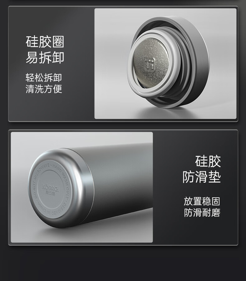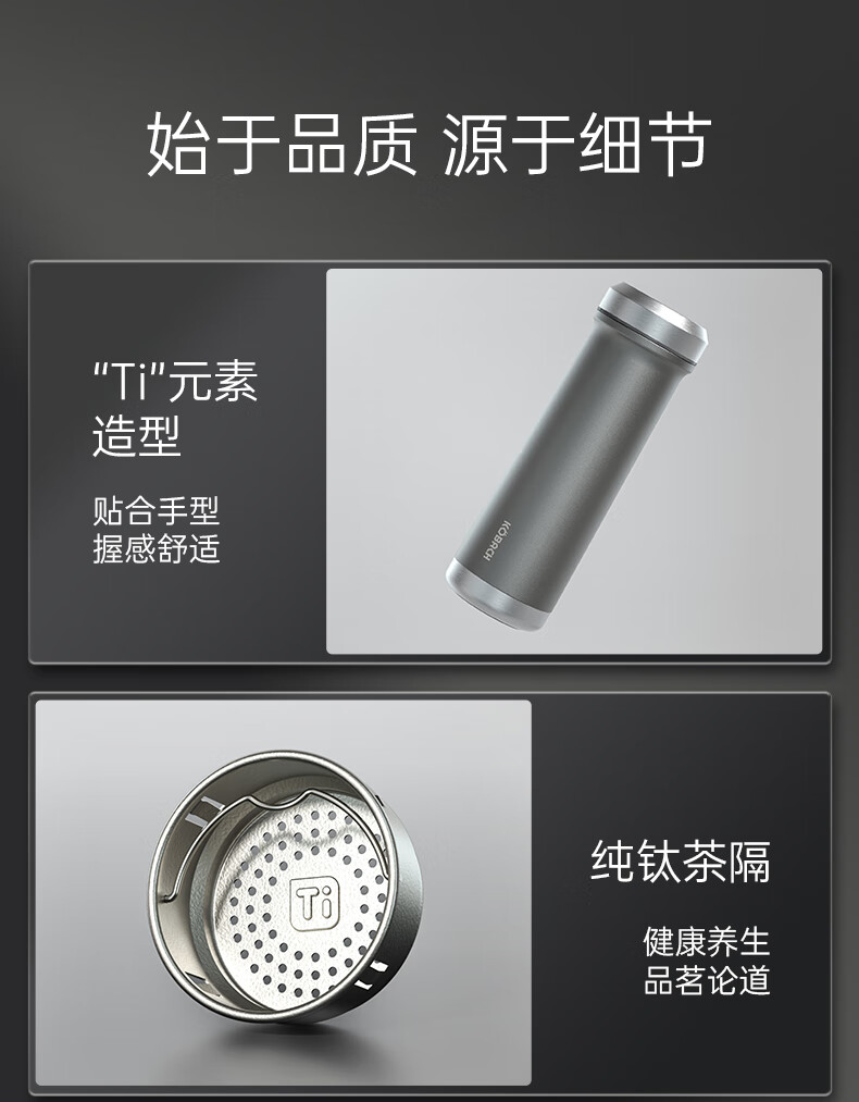 电商-康巴赫钛晶系列纯钛真空保温杯450mL(云际灰)KH-B48T01