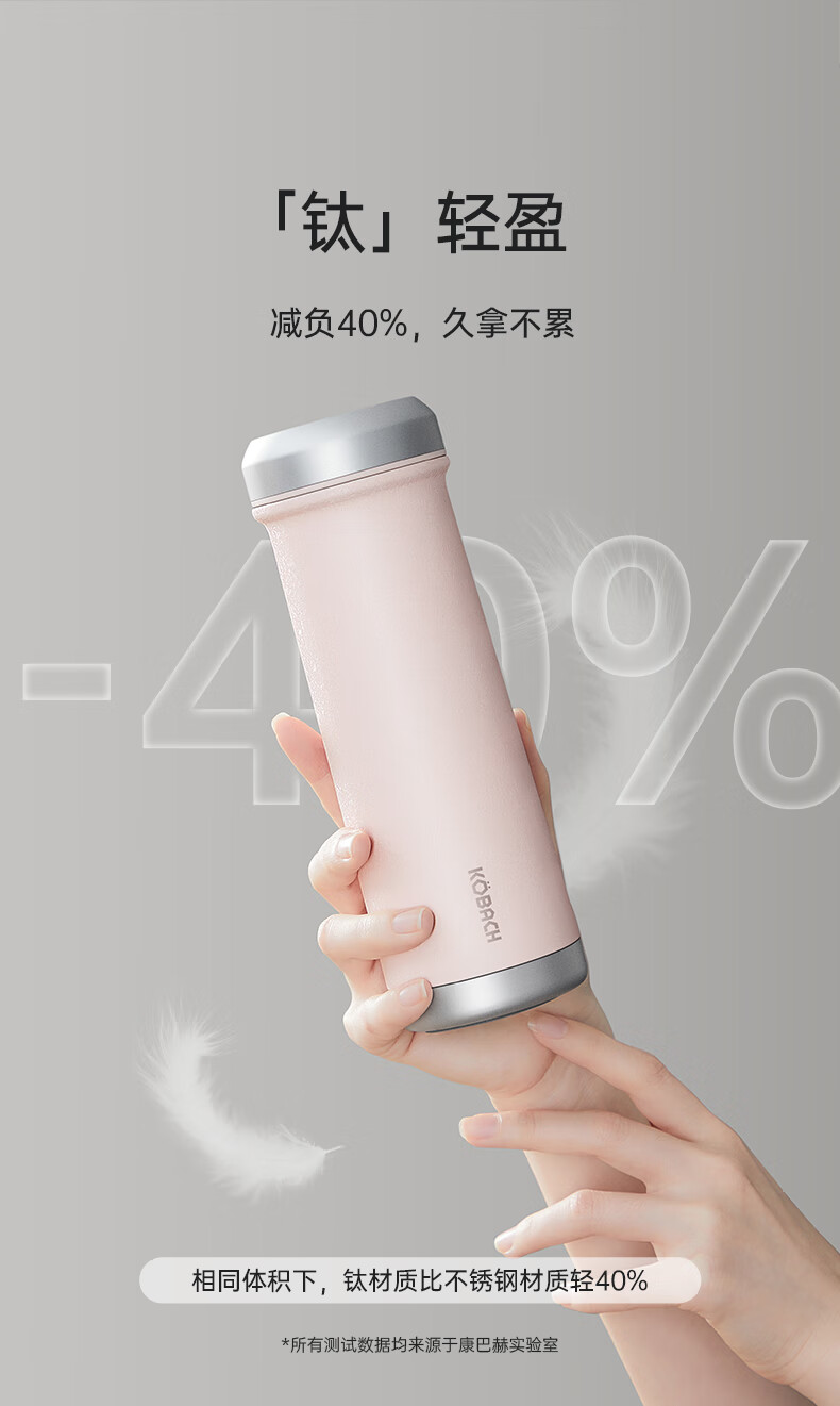 电商-康巴赫钛晶系列纯钛真空保温杯450mL(浅樱粉)KH-B48T02