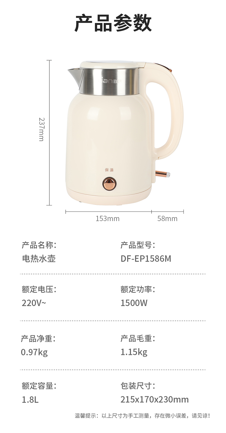 商品名称:(超运·禾贸)联创保温电热水壶DF-EP1586M