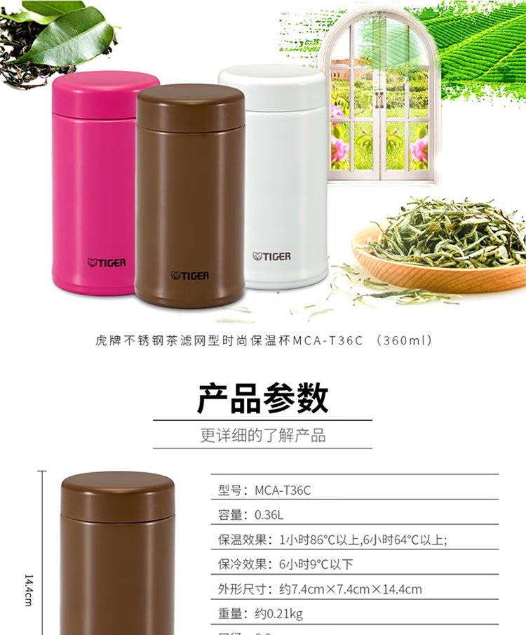 商品名称:(超运·禾贸)TIGER 虎牌茶滤网型保温杯MCA-T36C白色