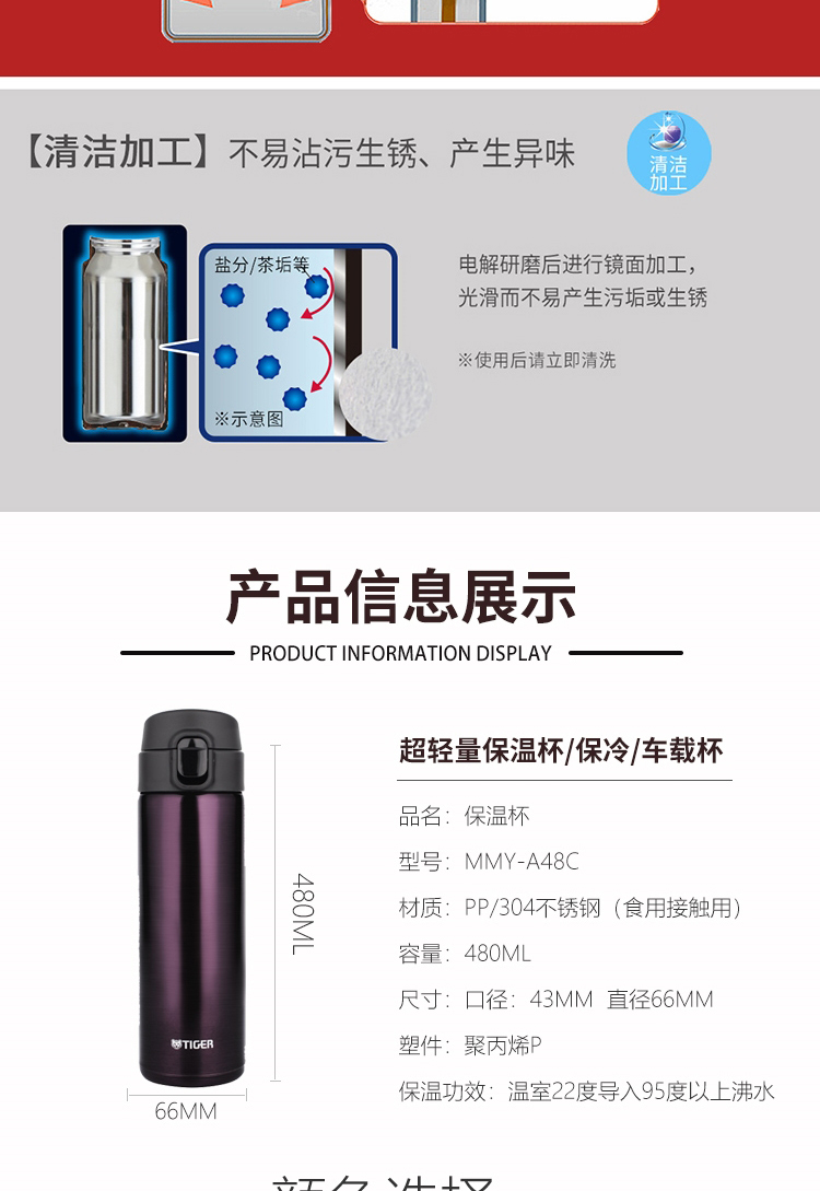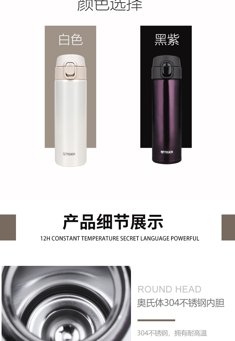 商品名称:(超运·禾贸)TIGER 虎牌 不锈钢真空杯保温杯MMY-A48C 咖啡色