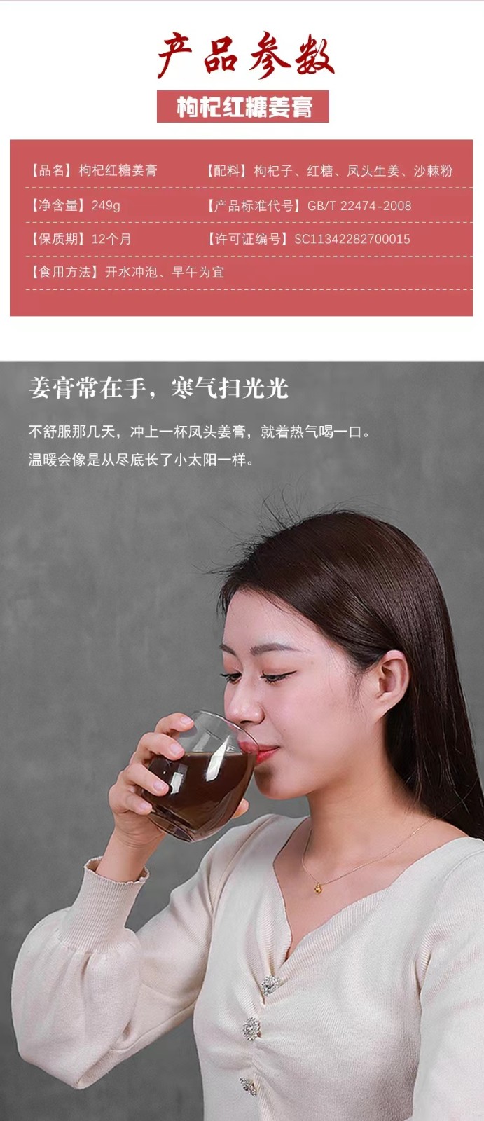 商品名称:(巨邦佑)BJ+凤头枸杞红糖姜膏249g*2 恩施特产姜辣适中