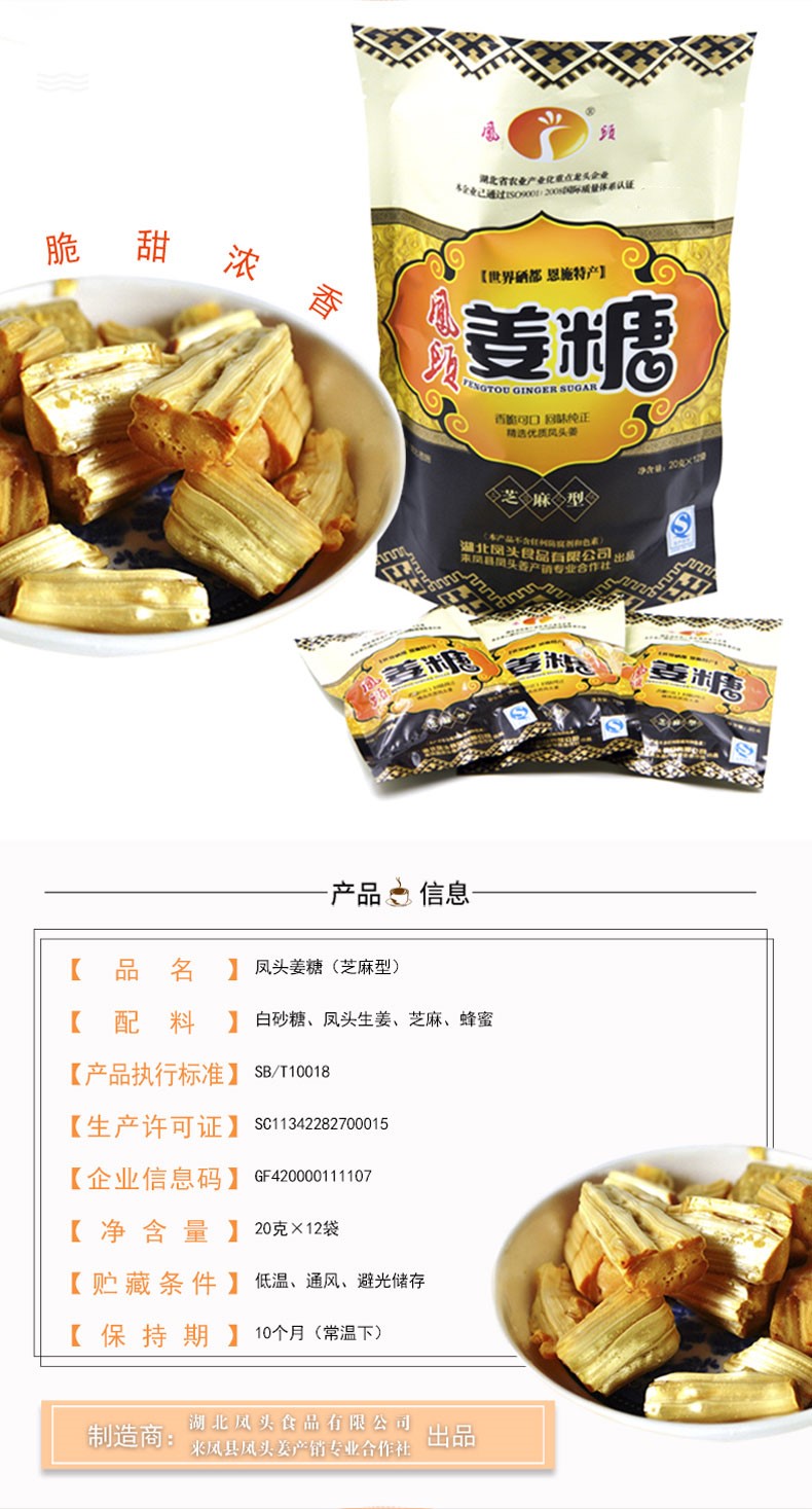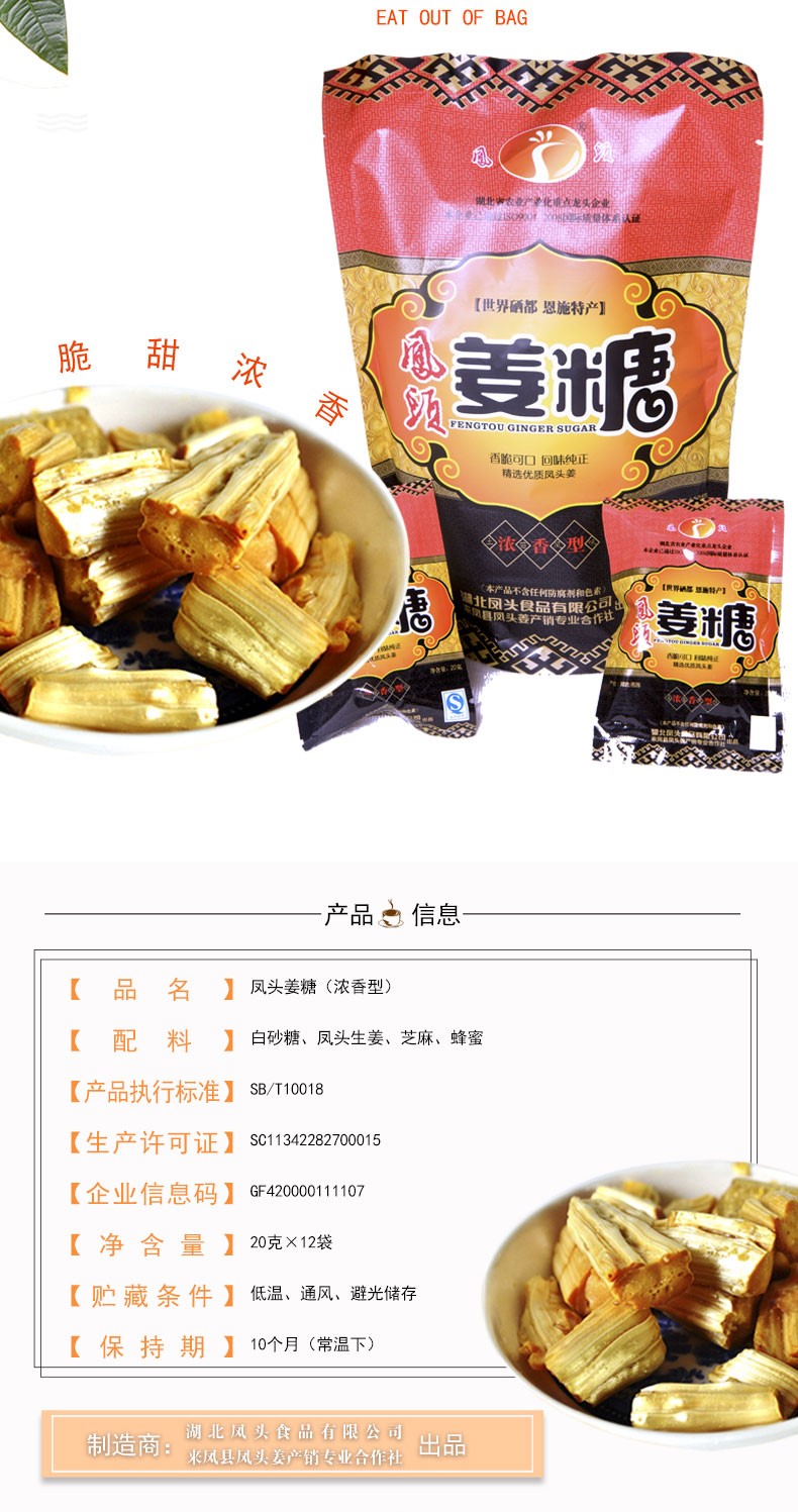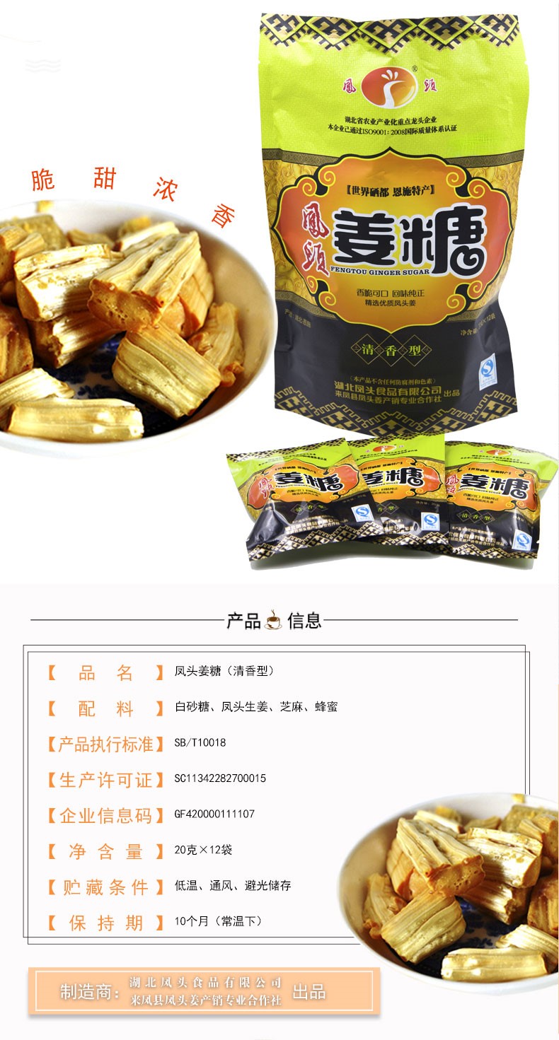 商品名称:(巨邦佑)BJ+凤头姜糖240g 恩施土家特产姜汁糖果