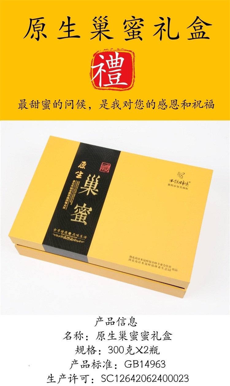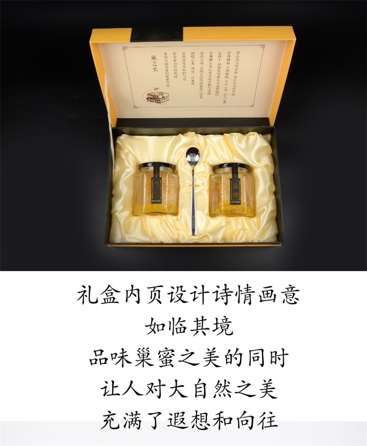 商品名称:(巨邦佑)BJ+水镜蜂情原生巢蜜礼盒300g*2 蜜稠味正营养价值高
