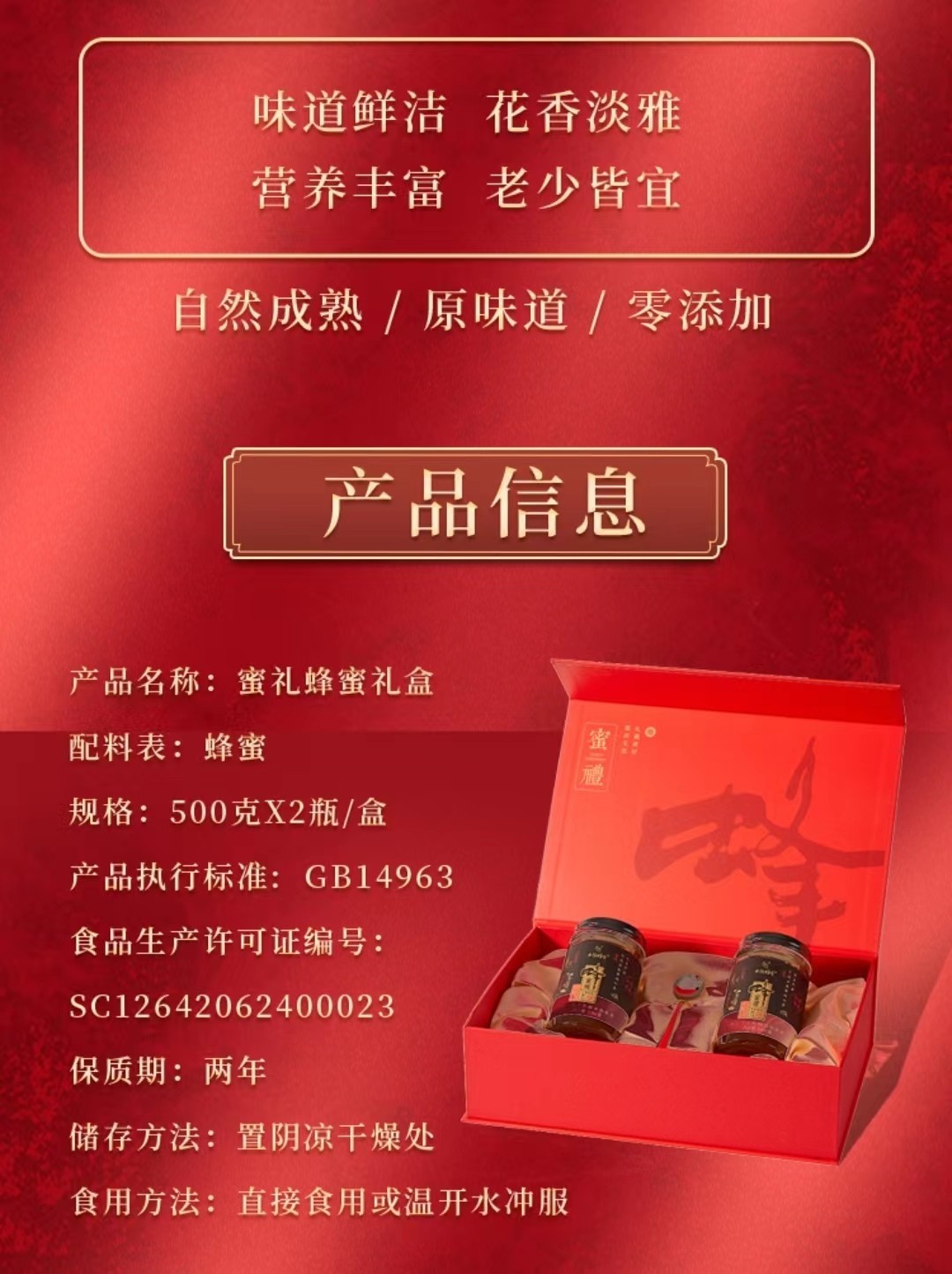 商品名称:(巨邦佑)BJ+水镜蜂情蜜礼蜂蜜礼盒500g*2 山野原酿营养丰富