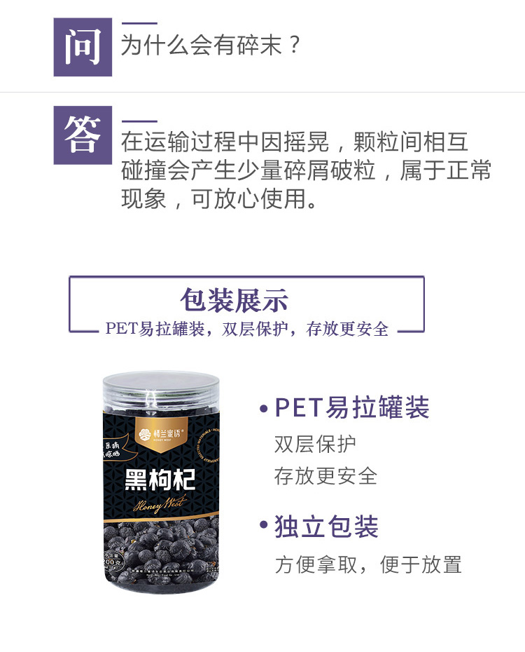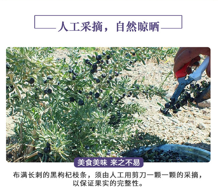 商品名称:(世星阳光) 楼兰蜜语 黑枸杞200g*2罐 新鲜无沙干净黑桑椹干货泡茶特产零食