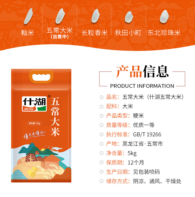 商品名称:(巨邦佑)R+什湖(SHIHURICE)五常大米5kg 东北黑龙江大米长粒米