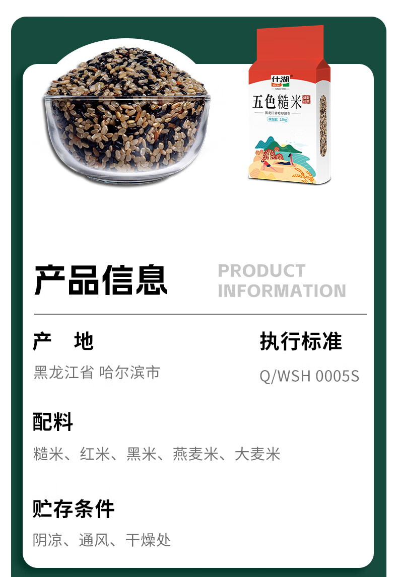 商品名称:(巨邦佑)R+什湖五色糙米2.5kg 五谷杂粮米 孕妇主食 健身代餐粗粮 低脂减糖