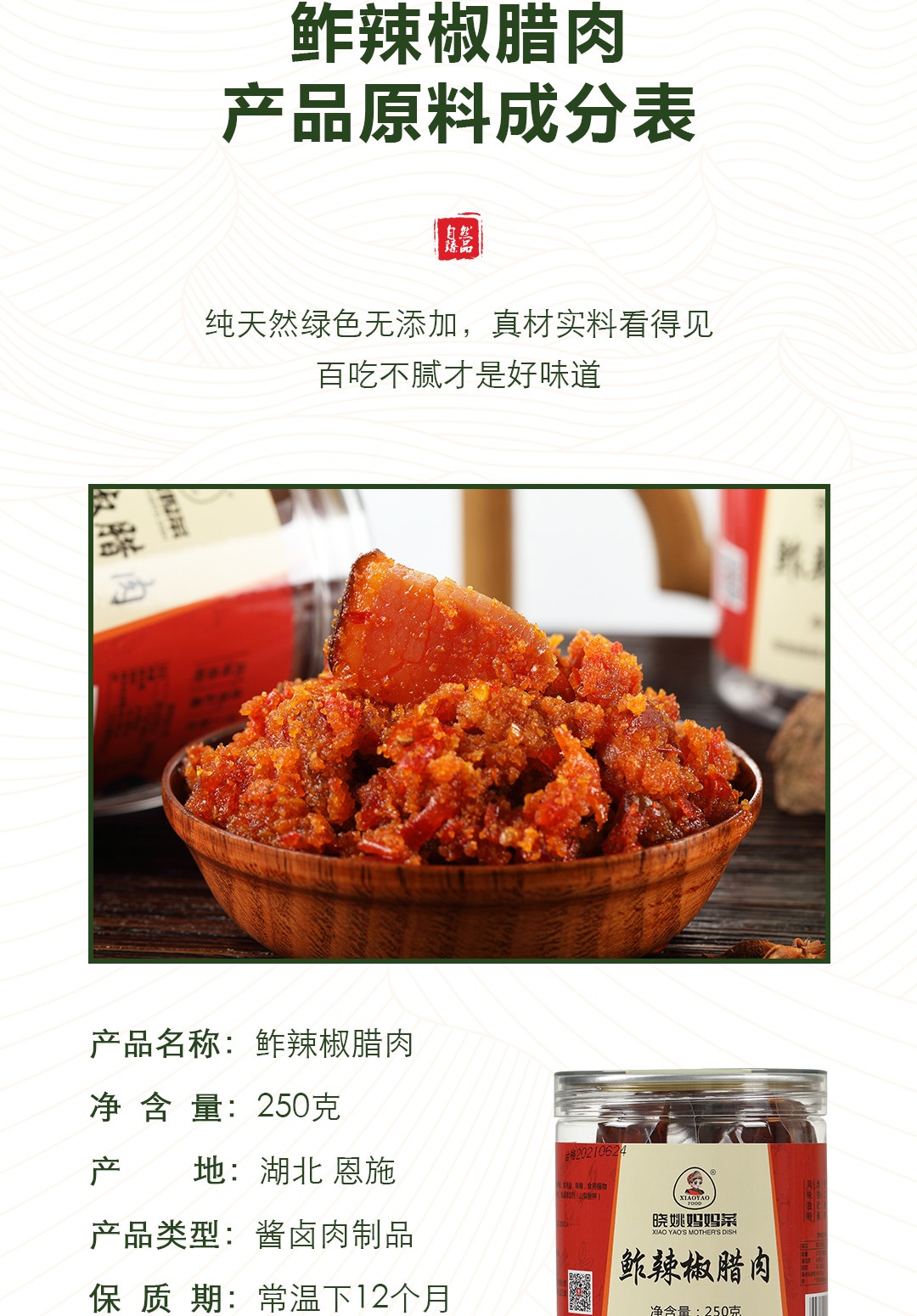 商品名称:(世星阳光) 晓姚农夫鲊辣椒腊肉250g