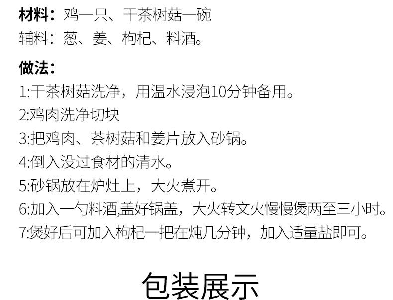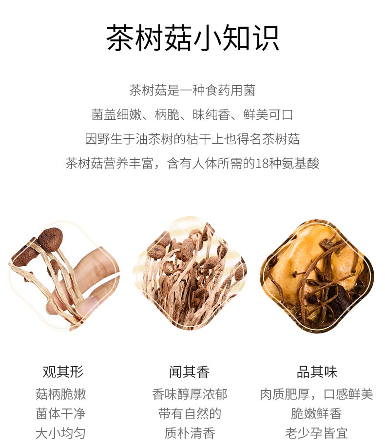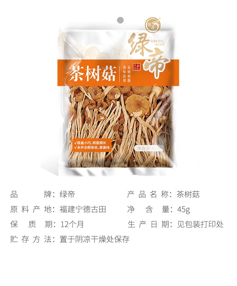 商品名称:(世星阳光) 绿帝茶树菇45g*3 干货火锅炖汤食材福建土特产菌菇干货未开伞山珍食用菌