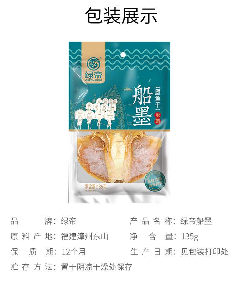 商品名称:(世星阳光)绿帝船墨135g 淡晒墨鱼干福建东山特产墨鱼乌贼干煲汤