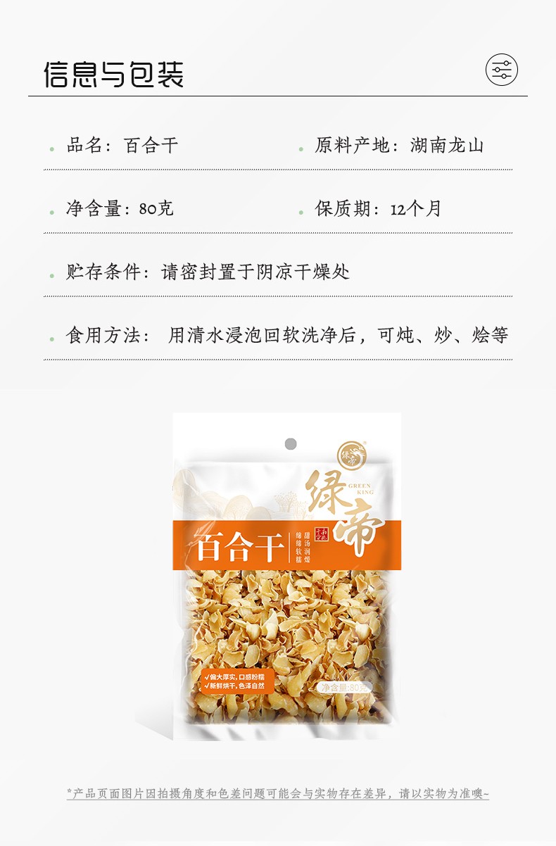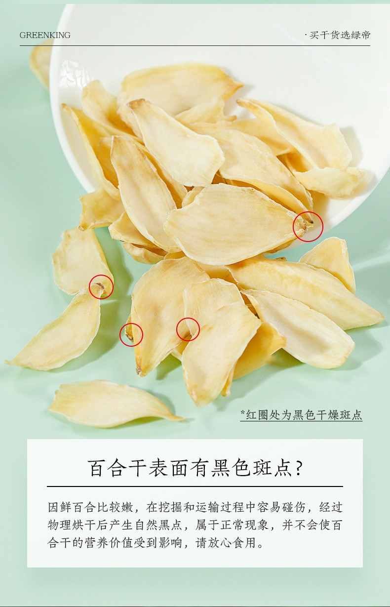 商品名称:(世星阳光)绿帝百合干80g*2 新鲜食用百合片干货湖南特产百合煲汤食材炒菜糖水配料