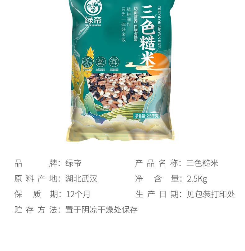 商品名称:(世星阳光)绿帝三色糙米2.5kg 五谷杂粮糙米膳食纤维八宝米