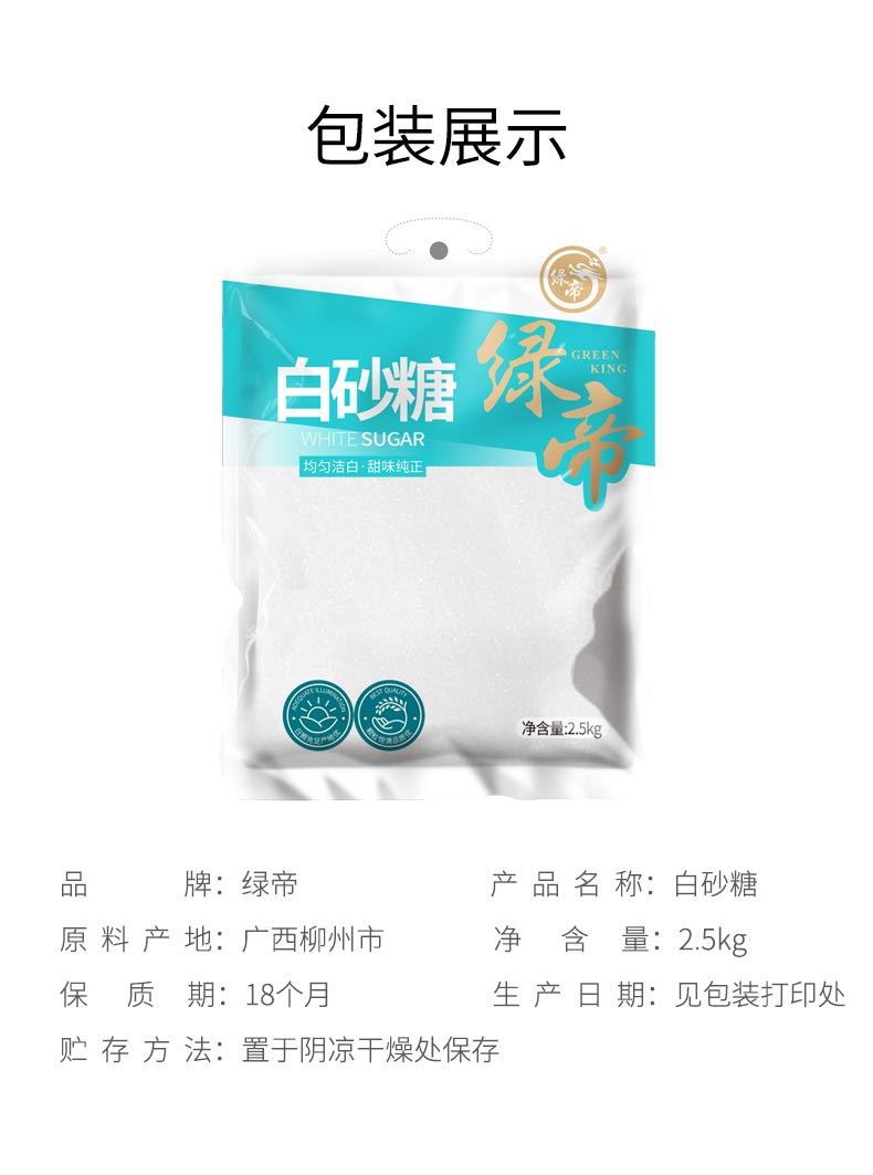 商品名称:(世星阳光)绿帝白砂糖2.5kg 南北干货、调味品白砂糖家用白糖优级专用