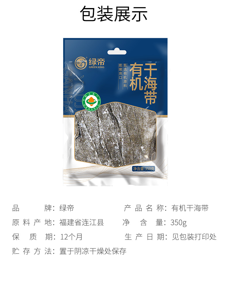 商品名称:(世星阳光)绿帝有机干海带350g 火锅食材 海产干货 干海带 凉拌煲汤