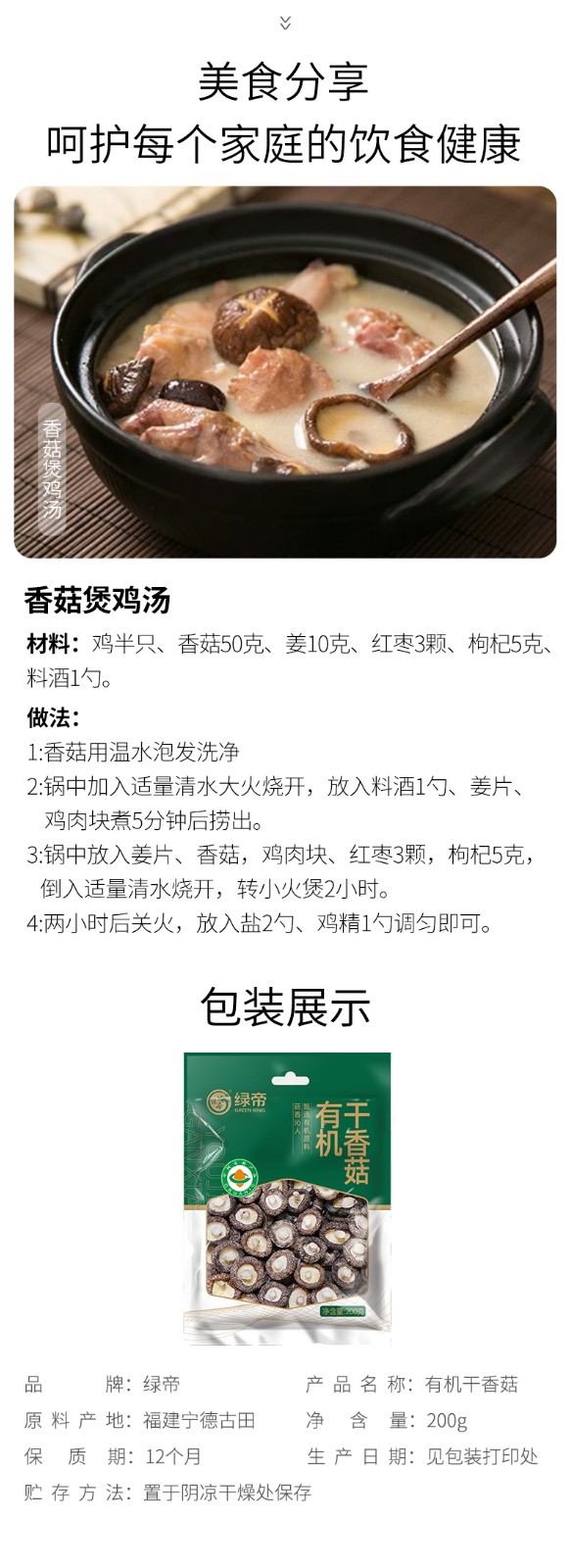 商品名称:(世星阳光)绿帝有机香菇200g 福建古田香菇 煲汤炖煮食材