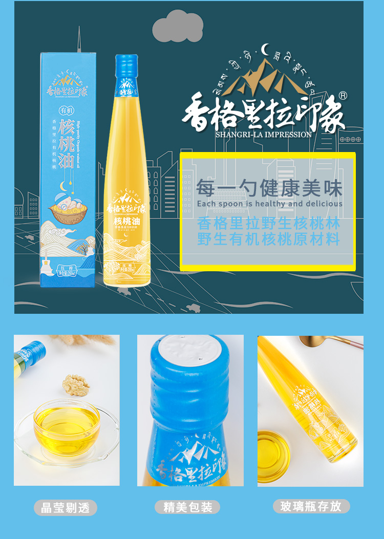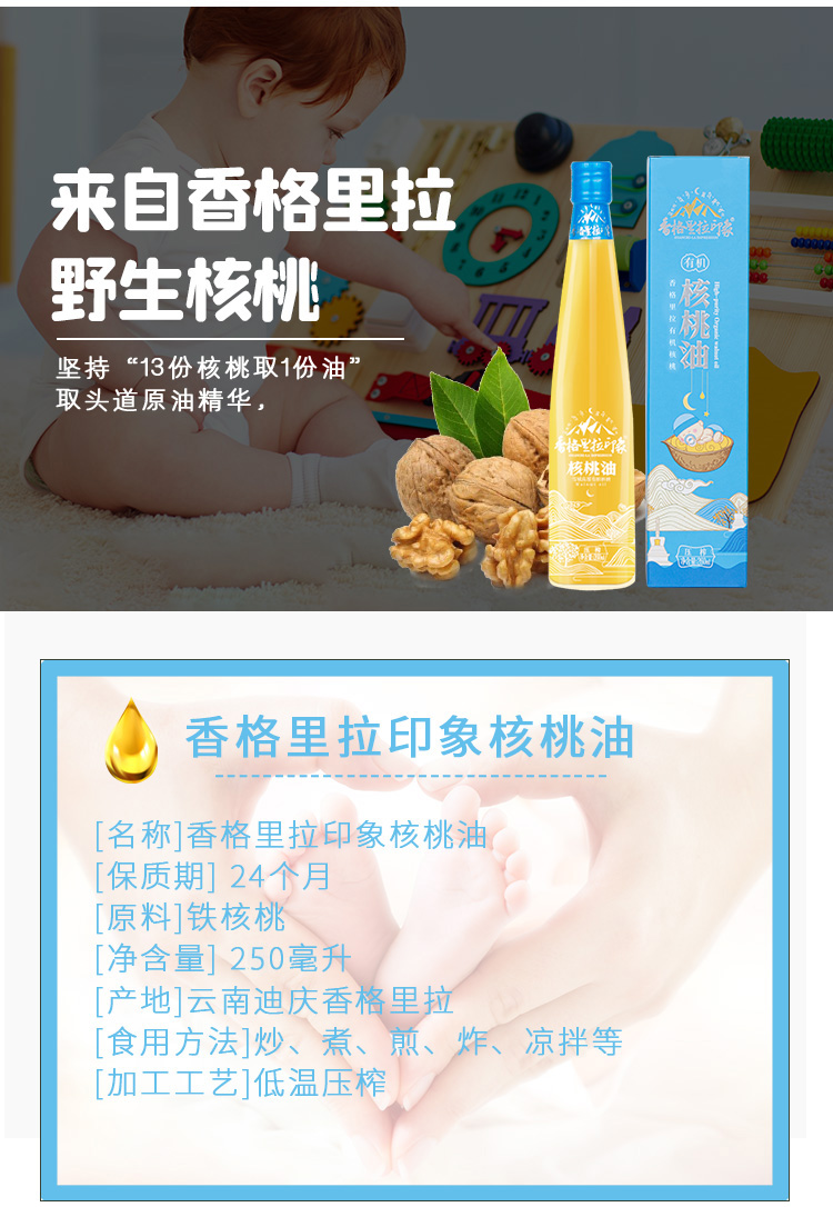 商品名称:(巨邦佑)BJ+香格里拉印象有机核桃油250ml宝宝装 低温压榨