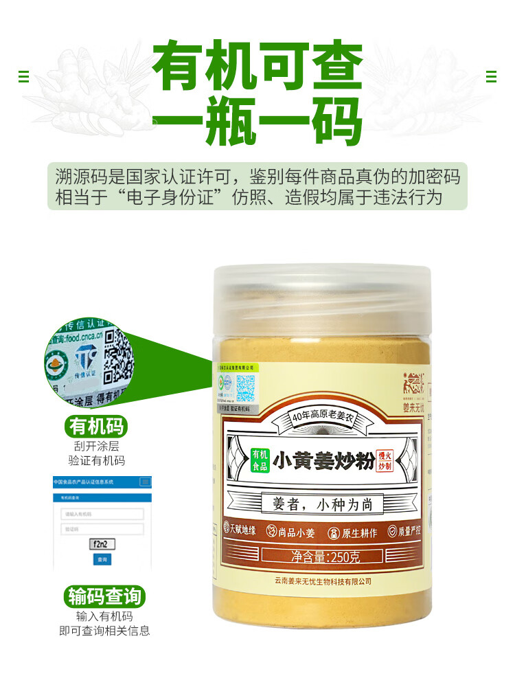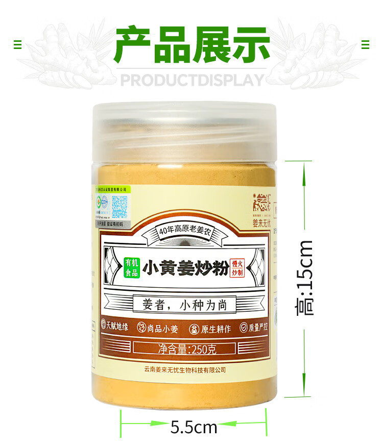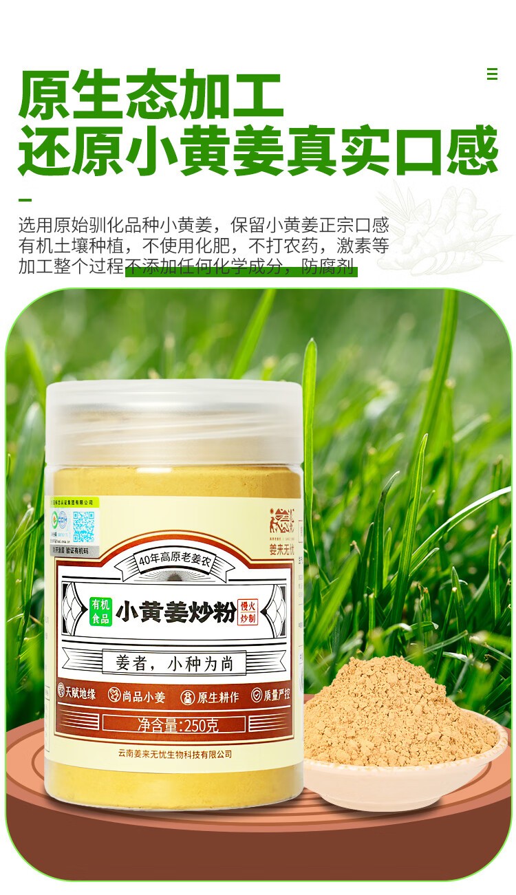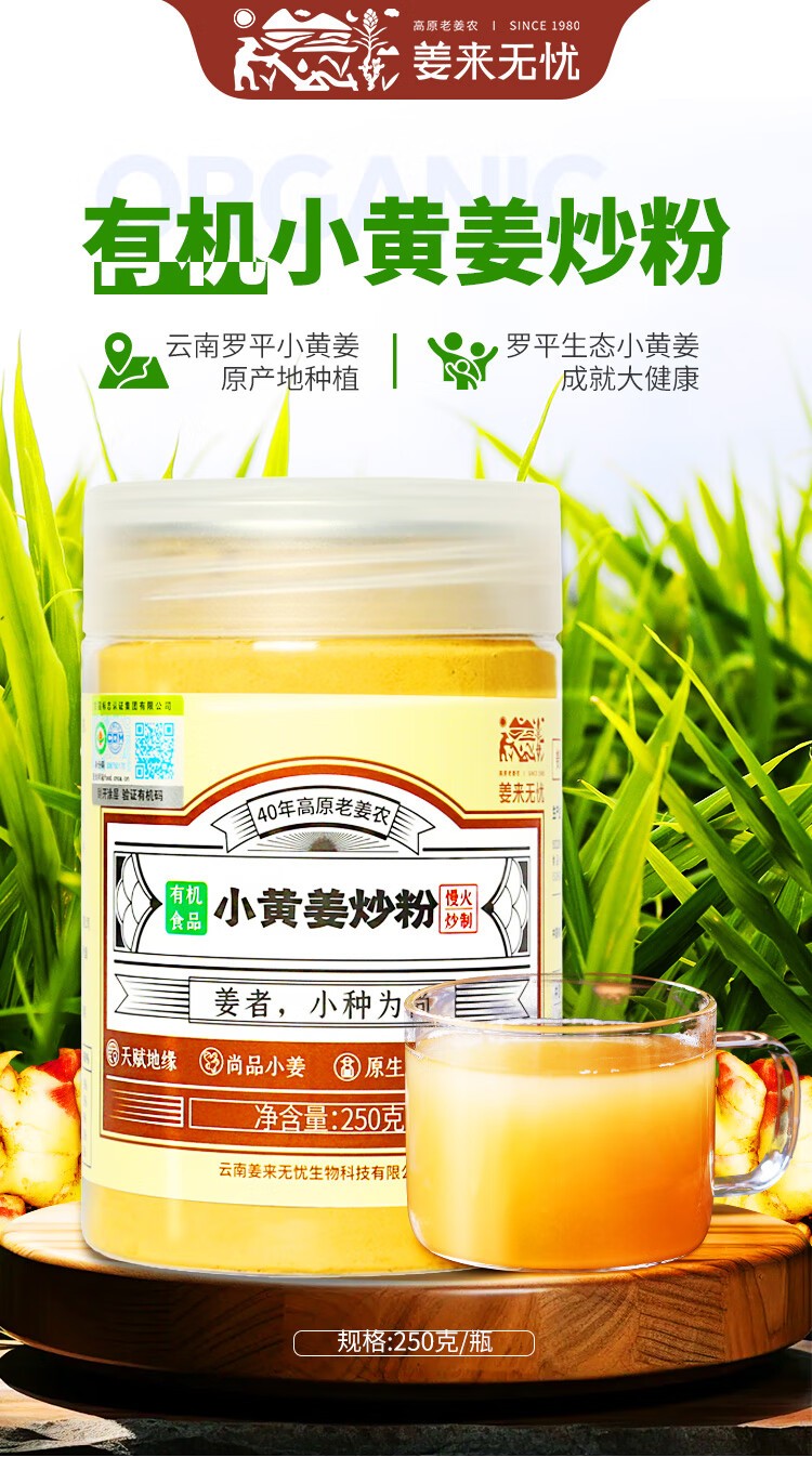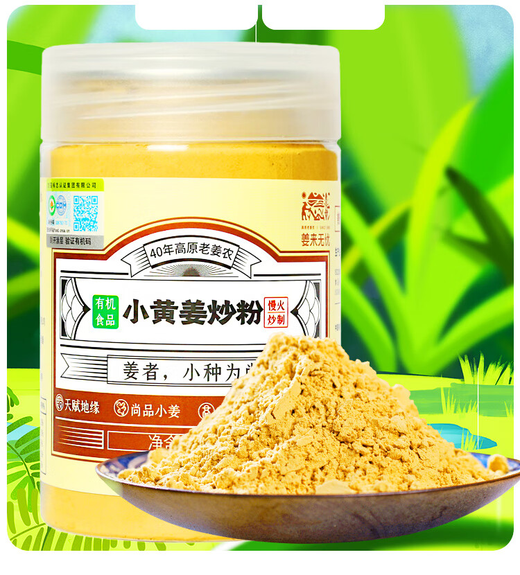 商品名称:(巨邦佑)BJ+姜来无忧有机小黄姜炒粉250g*2 粉质细腻姜香浓郁