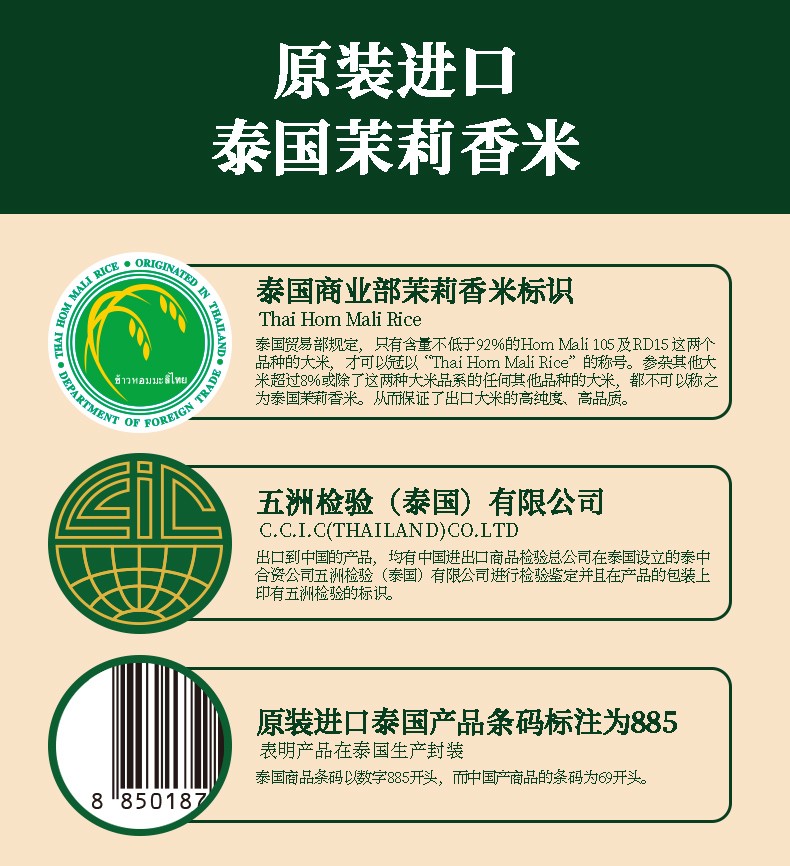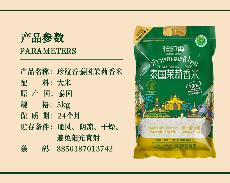 商品名称:(世星阳光)珍粒香泰国茉莉香米绿标款5kg 原装进口