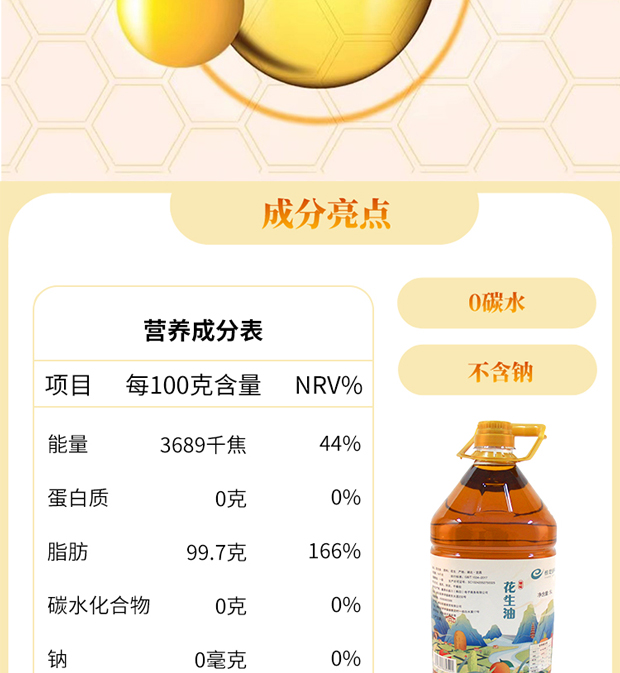 商品名称:(自营1) 惟楚臻味一级花生油5L桶