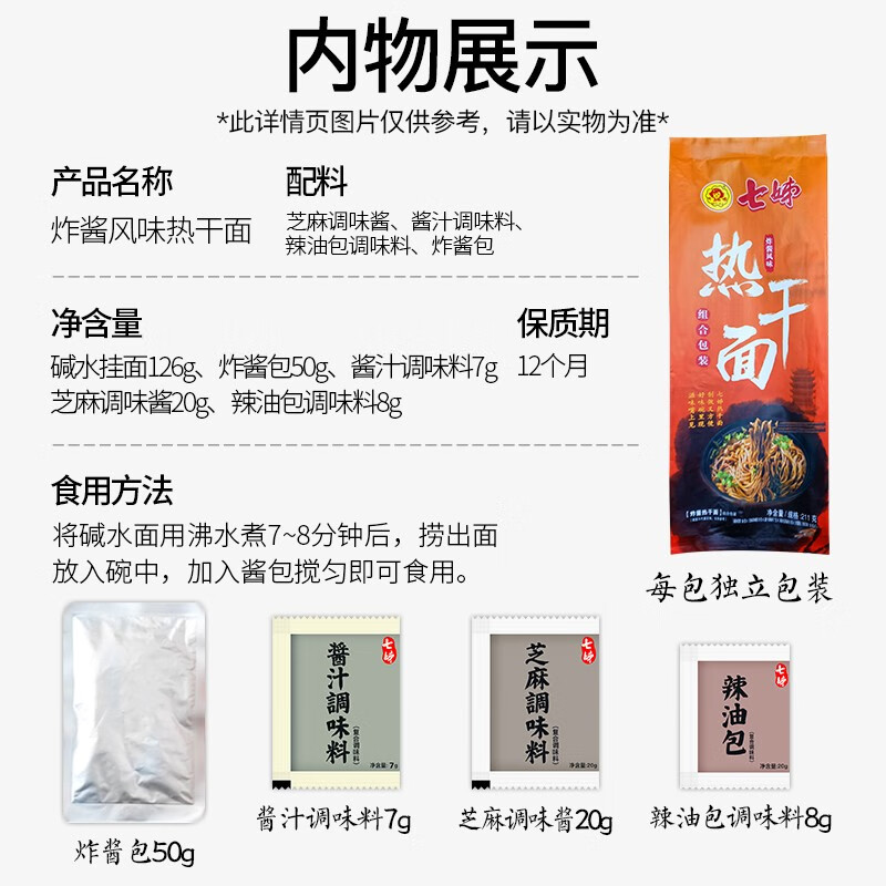 商品名称:(巨邦佑)BJ+七姊炸酱风味热干面211g*5 武汉特产带酱料方便碱水挂面独立包装