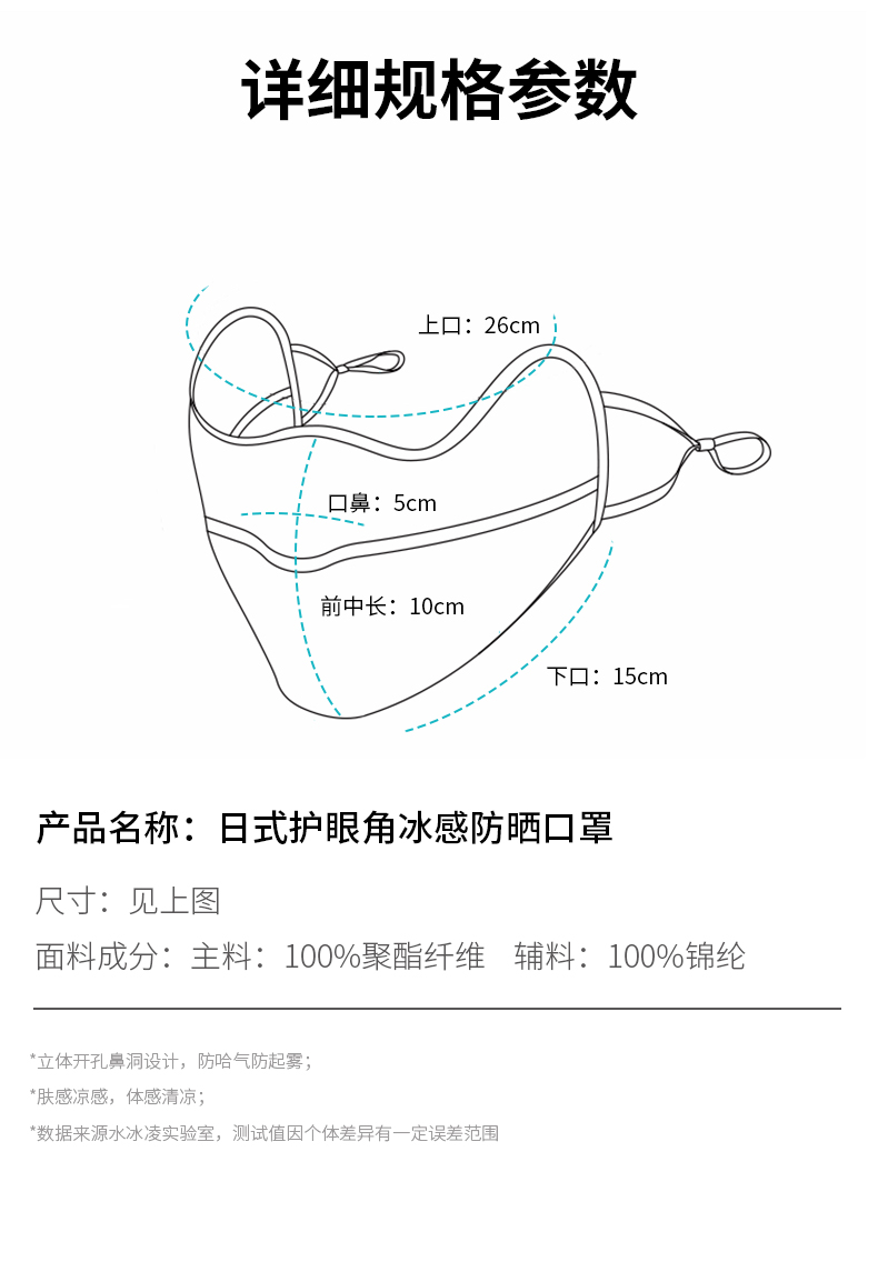 商品名称:(巨邦佑)BJ+水冰凌日式护眼角冰感防晒口罩 多色可选女薄款透气遮阳护眼角防紫外线夏防晒神器