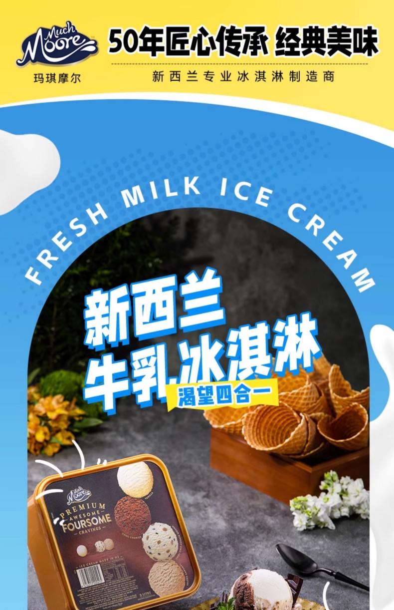 商品名称:(巨邦佑)BJ+玛琪摩尔家庭囤货组合 2L金盒*2+1L圆桶+挖球勺新西兰进口桶装冰激凌全乳脂奶香