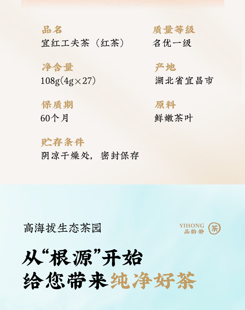 商品名称:(巨邦佑)BH+萧氏茶宜茶集团宜红工夫茶108g盒*1 品韵系列礼盒送人高档茶叶醇香回甘 品韵·静