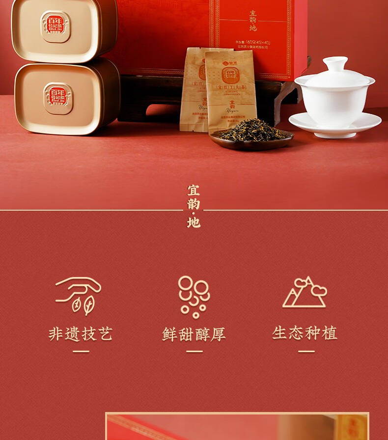 商品名称:(巨邦佑)BH+萧氏茶宜红工夫茶160g 礼盒装特级宜昌红茶高档茶叶送礼长辈湖北特产宜韵·地