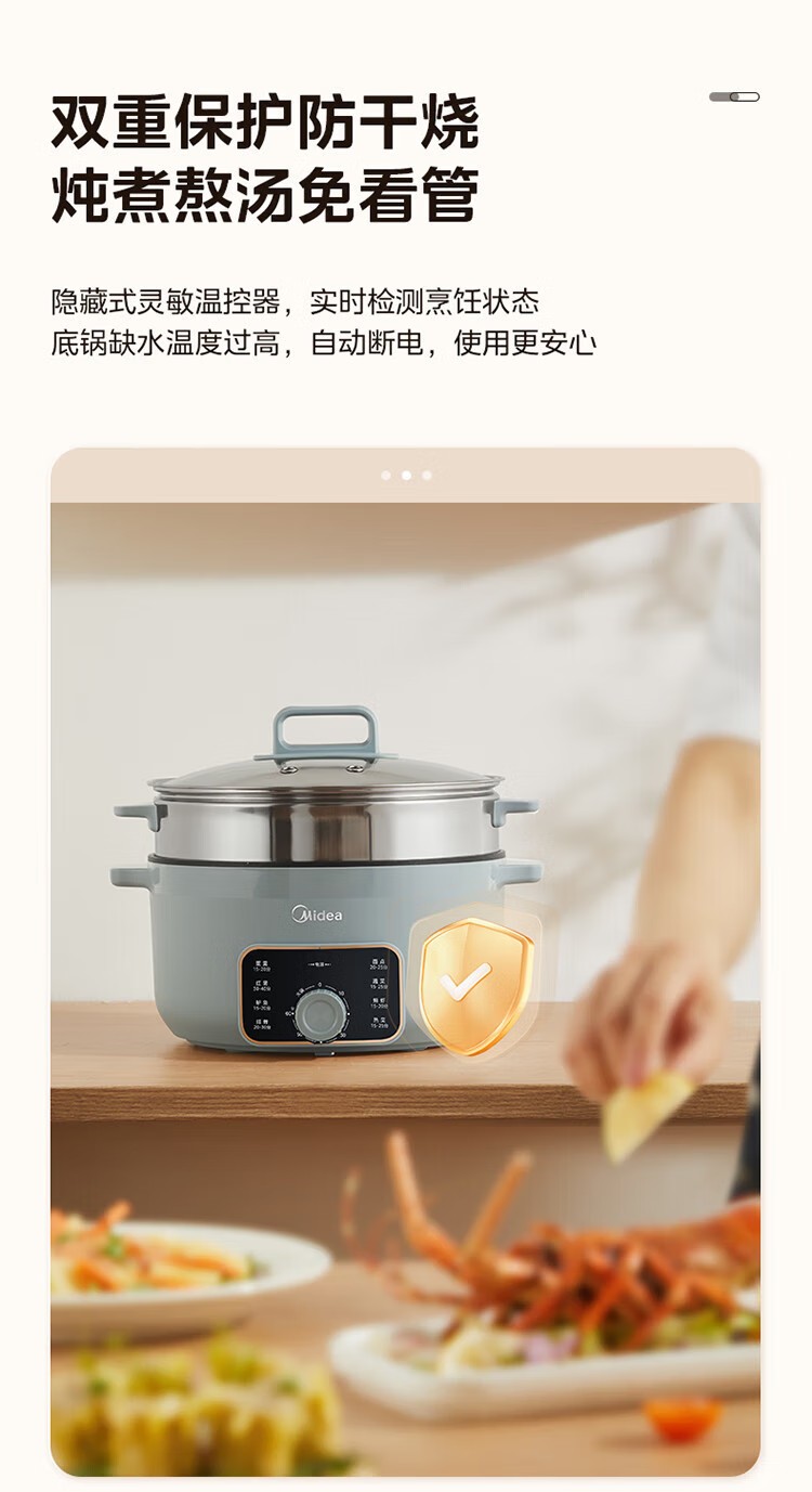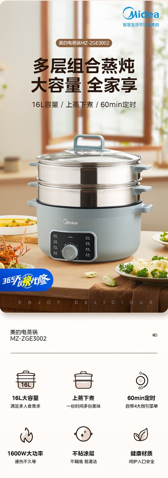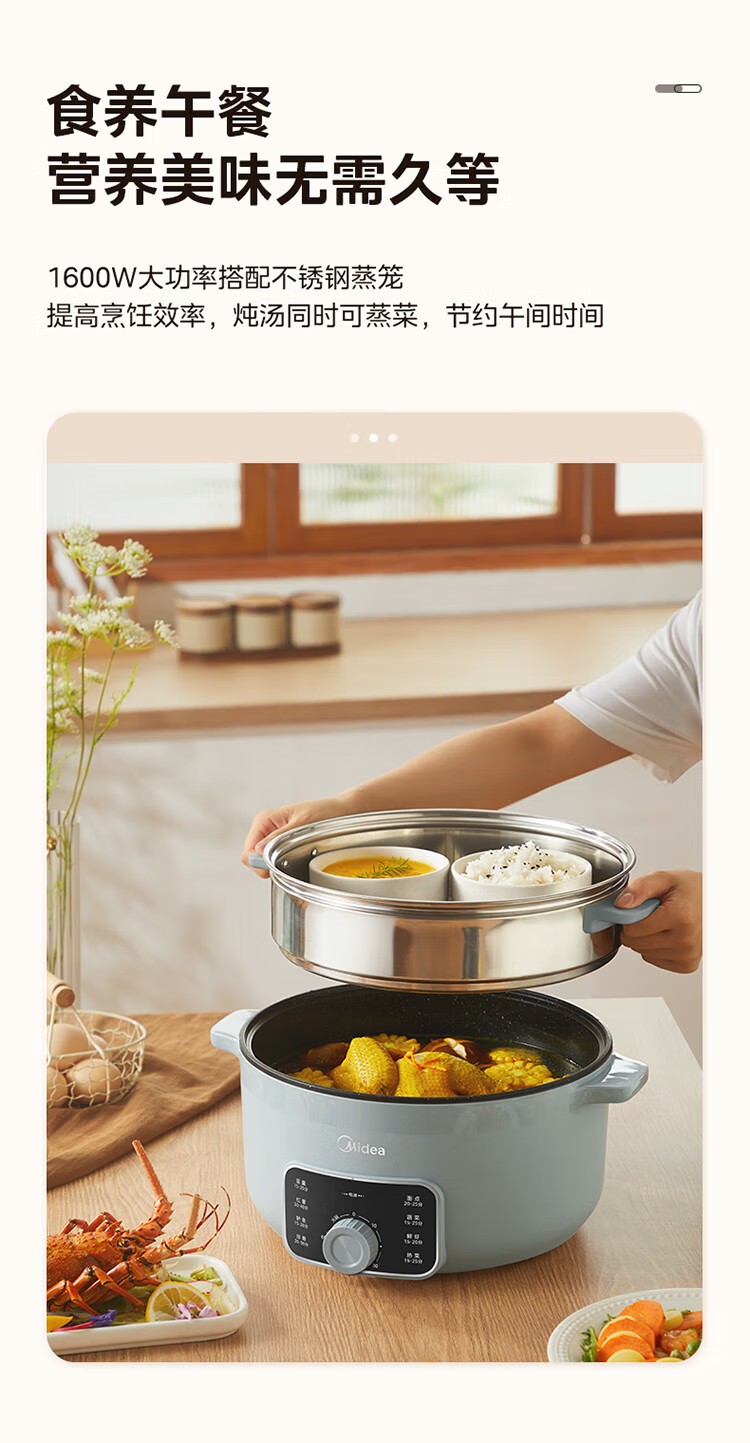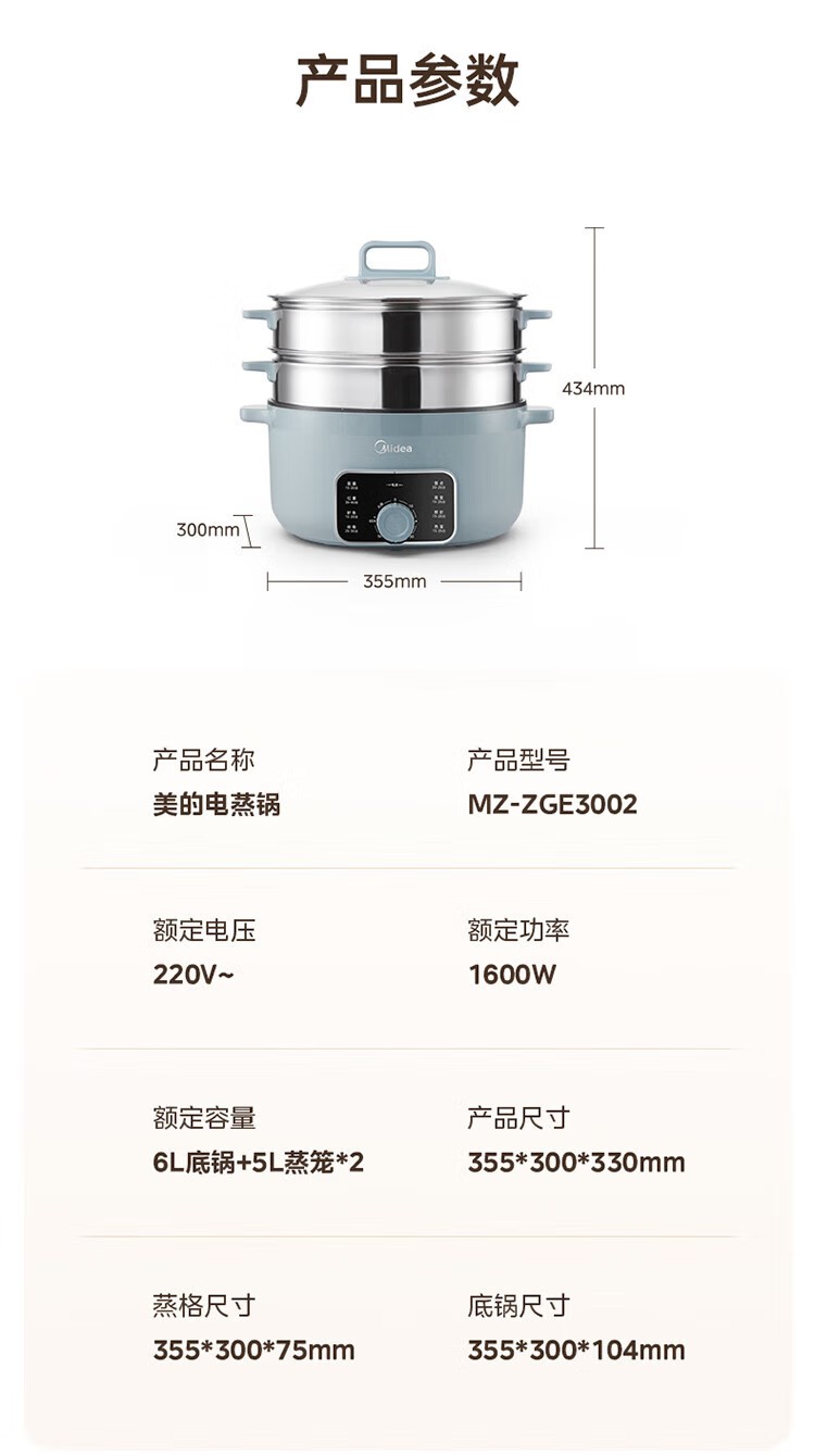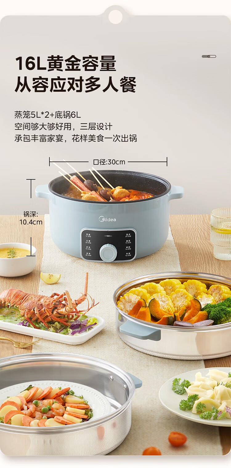 (巨邦佑)R+美的(Midea)电蒸锅ZGE3002 电煮锅多功能多用途锅家用蒸包子锅 三层大容量分体 【16L上蒸下煮60分定时】