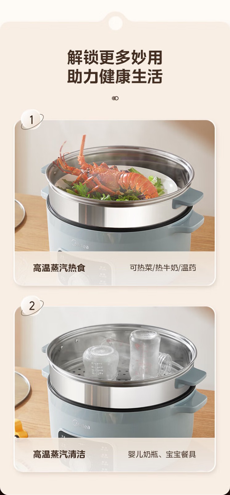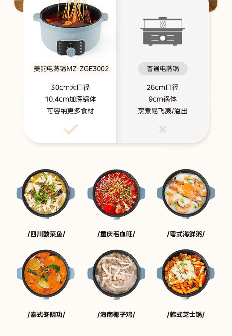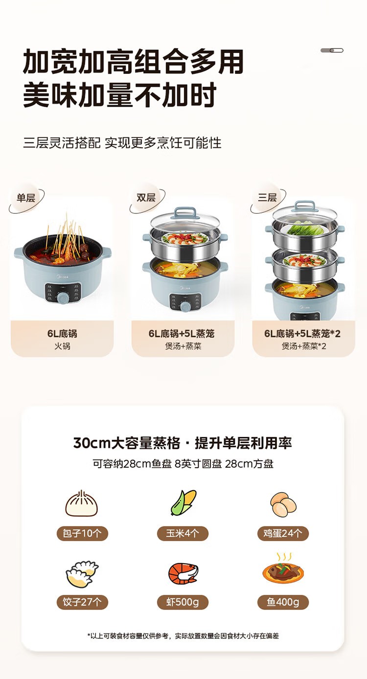 商品名称:(巨邦佑)R+美的(Midea)电蒸锅ZGE3002 电煮锅多功能多用途锅家用蒸包子锅 三层大容量分体 【16L上蒸下煮60分定时】