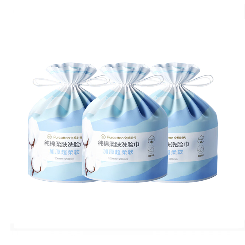 (汇景缘)(F)全棉时代2022纯棉柔肤洗脸巾-卷装60g(加厚款),200mm*200mm,70片袋*3