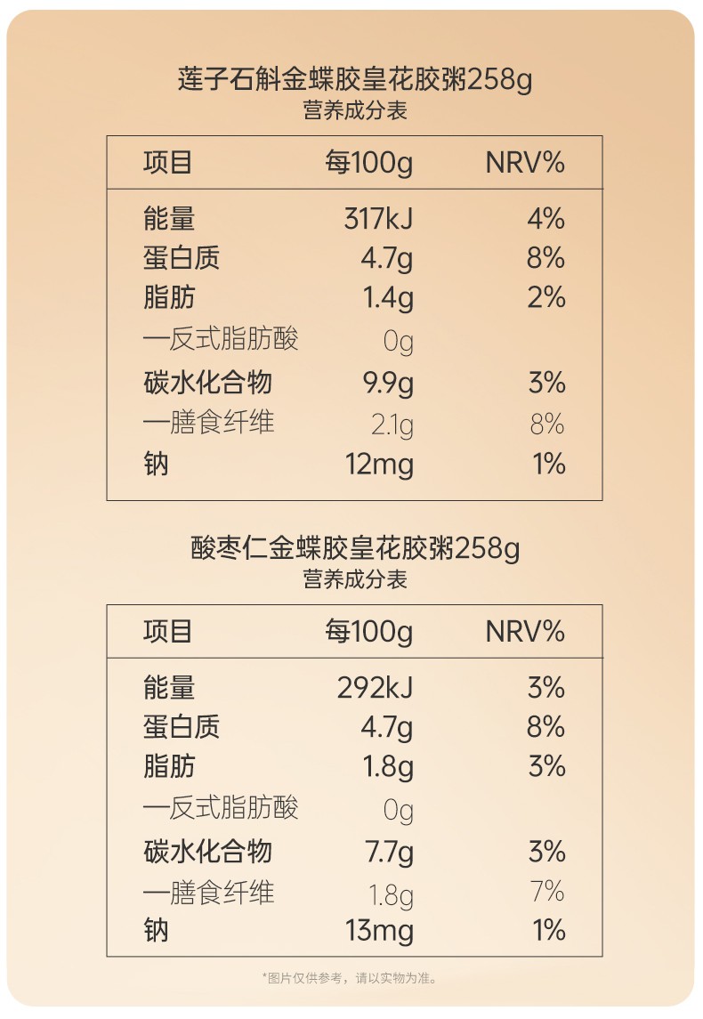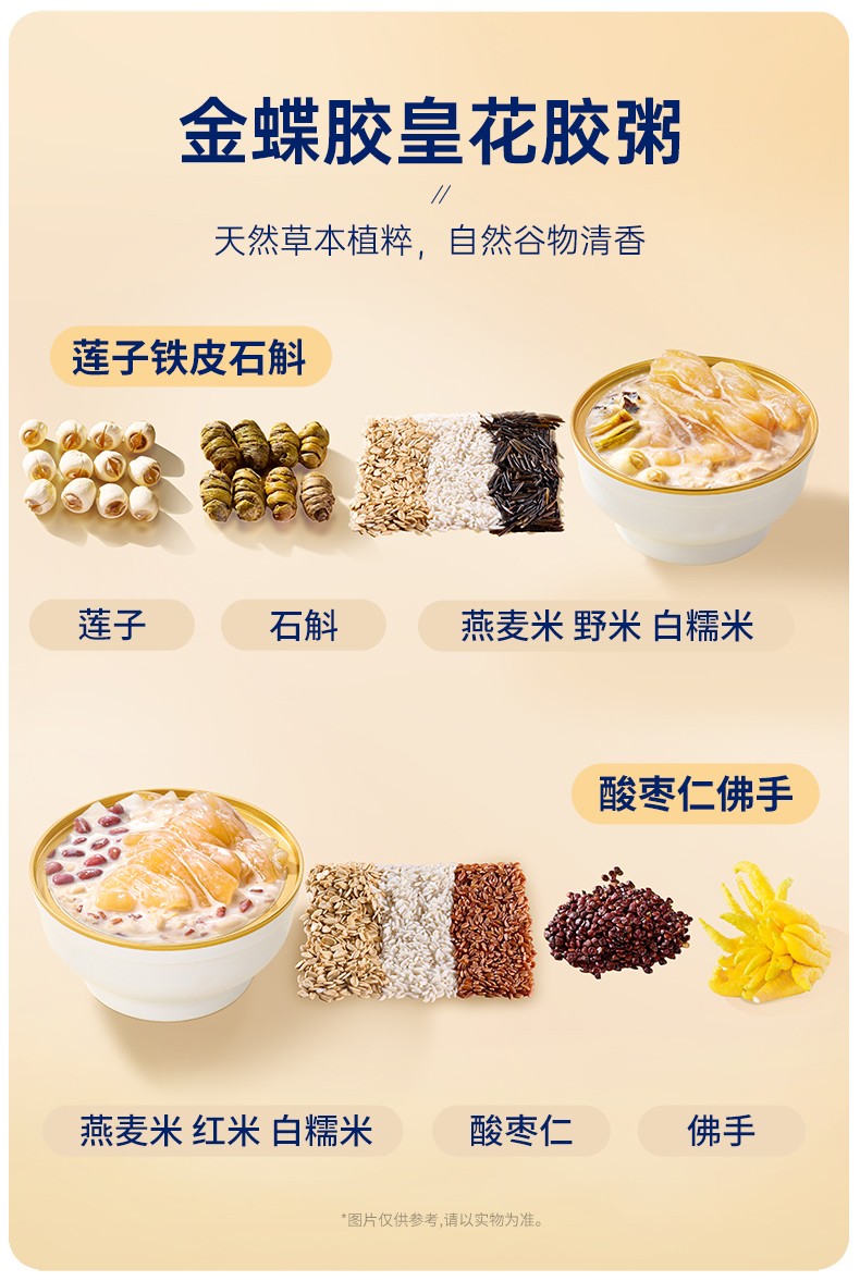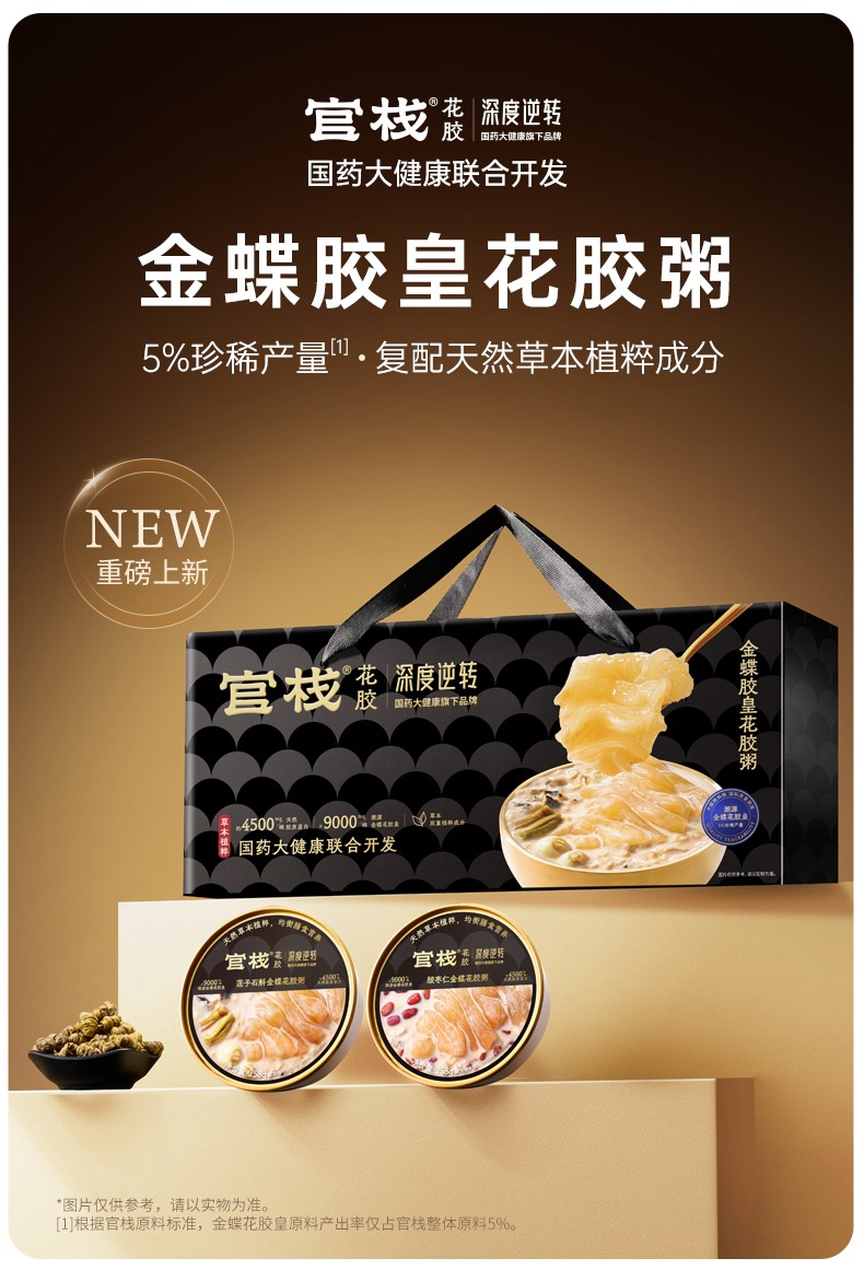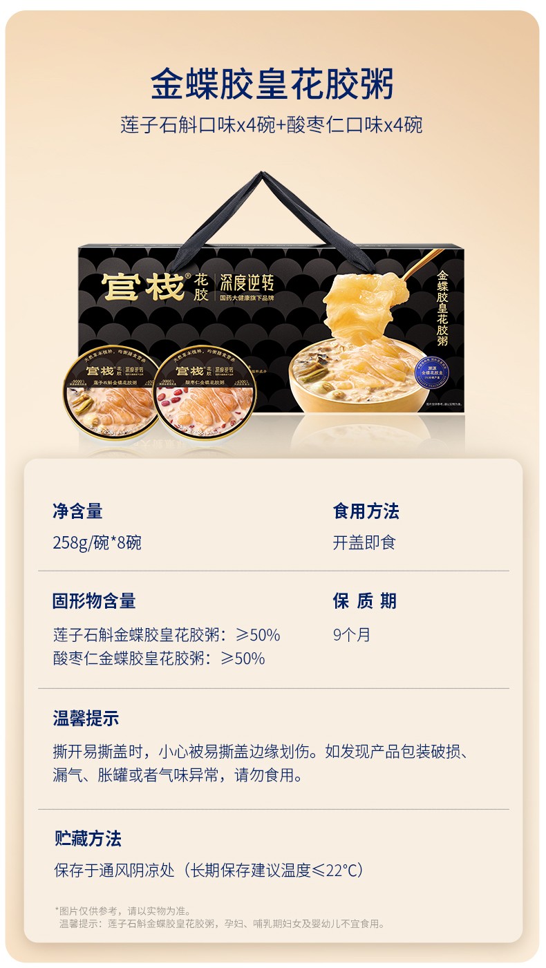 商品名称:(超运·禾贸)官栈×国药深度逆转 金蝶胶皇花胶粥礼盒258g*8礼盒装 补充胶原便携代餐礼盒